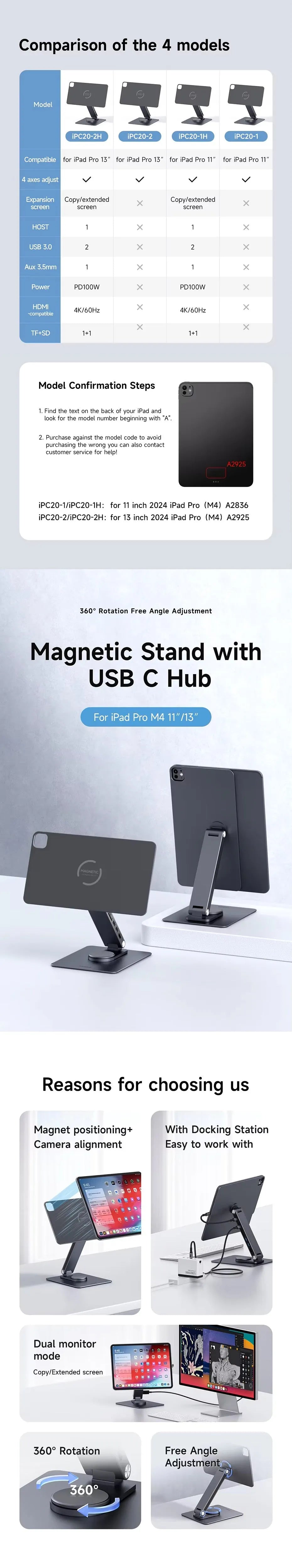 Hagibis Magnetic iPad Pro Stand with Hub Docking Station for iPad Pro M4 2024