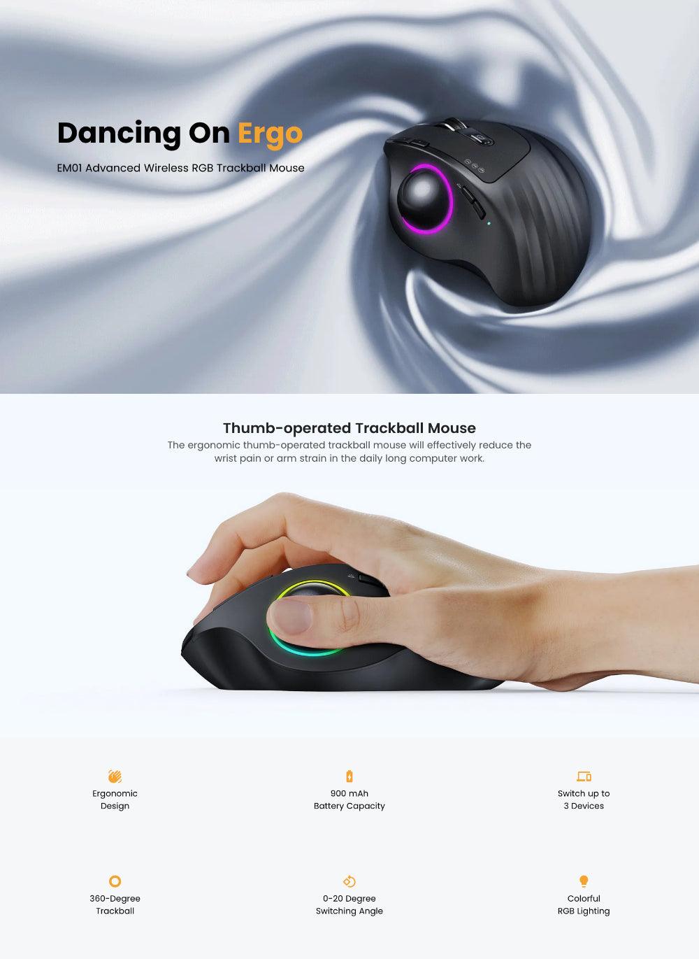 Introducing the Ergonomic Thumb Trackball Mouse, a game-changer in cursor control. This innovative mouse places precision at your thumb's command, reducing wrist and arm fatigue. Its adjustable angle hinge offers a customised experience, minimising muscle strain. The mouse features 4 vibrant RGB lighting modes, and it's rechargeable with a long-lasting battery. With adjustable DPI levels, it glides effortlessly across surfaces. Enjoy versatile connectivity with Bluetooth and 2.4G wireless options, plus multi-device control. Note that not all keys are programmable, and MAC compatibility may vary. Enhance your productivity and comfort with this versatile, ergonomic mouse.