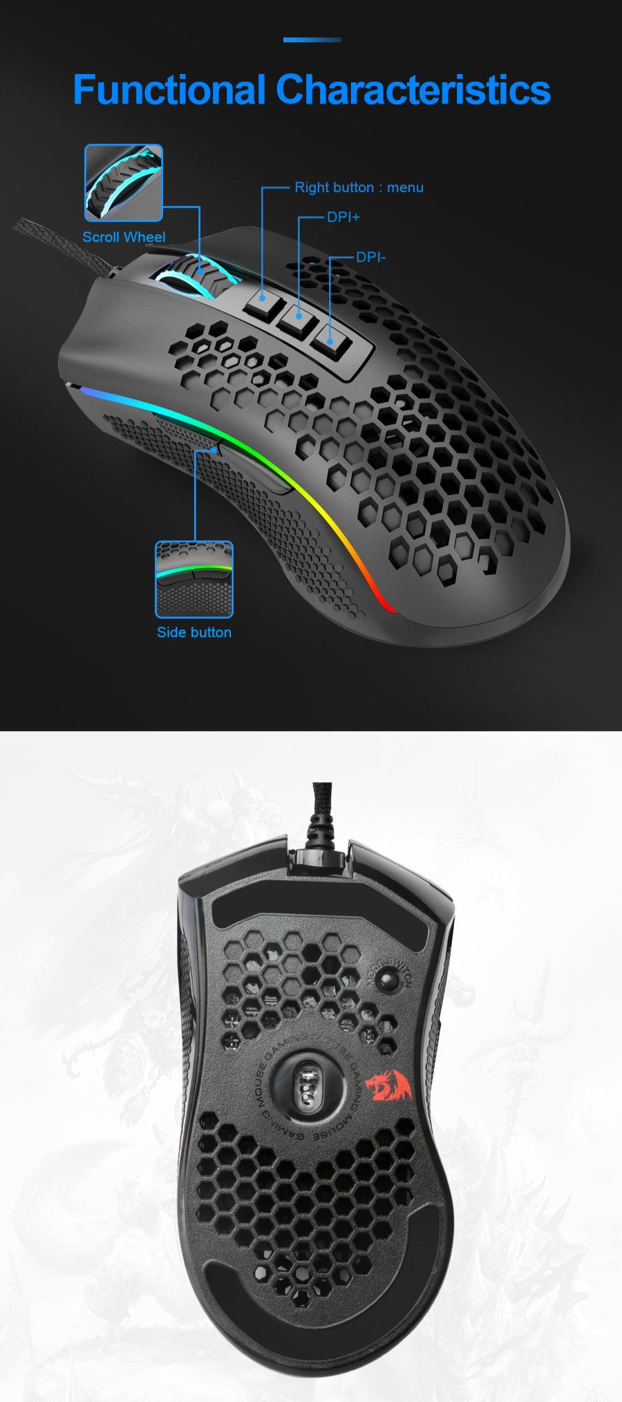 Redragon M808 Storm Ultralight Honeycomb RGB Gaming Mouse