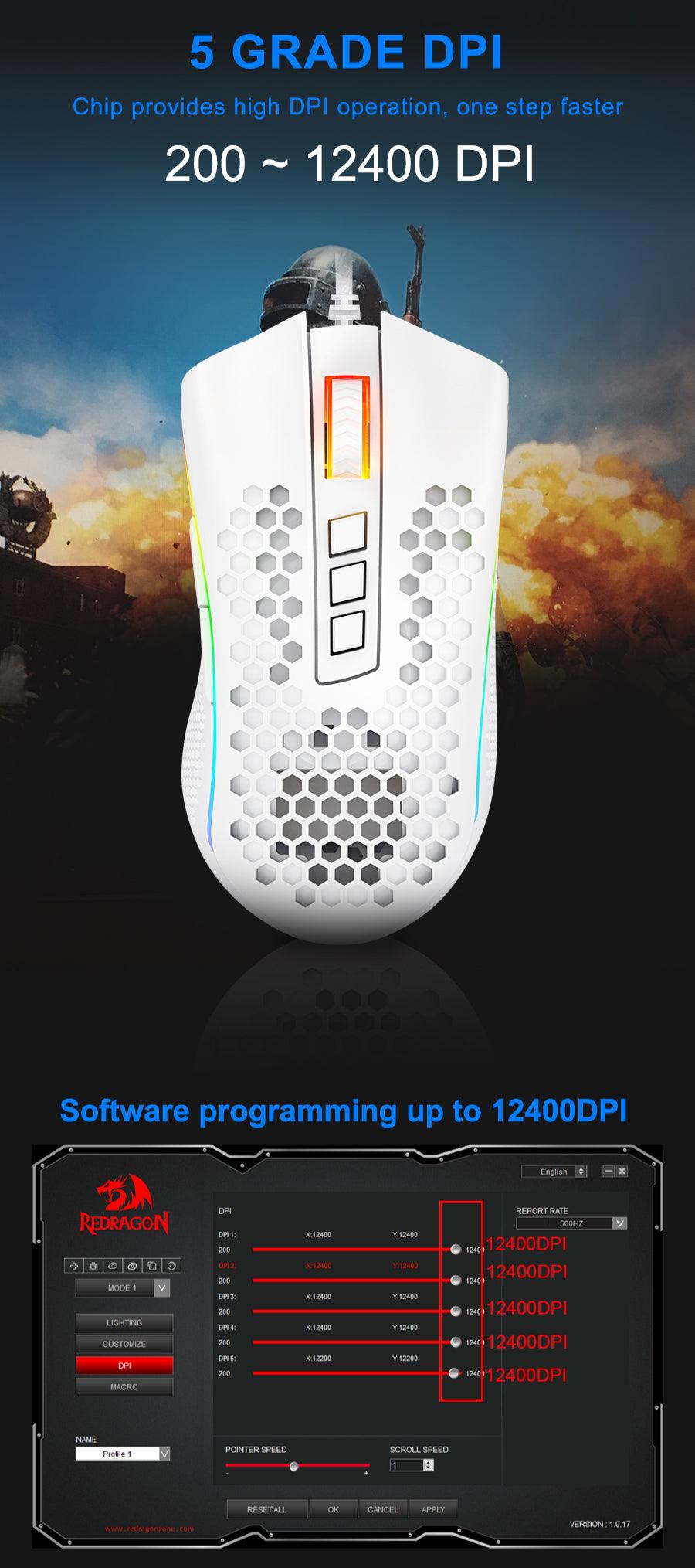Customize Your DPI/RGB Settings: With software support, you can tailor your DPI from 100 to 12400 and choose from a palette of 16.8 million colours, allowing you to engineer your preferred path to victory.