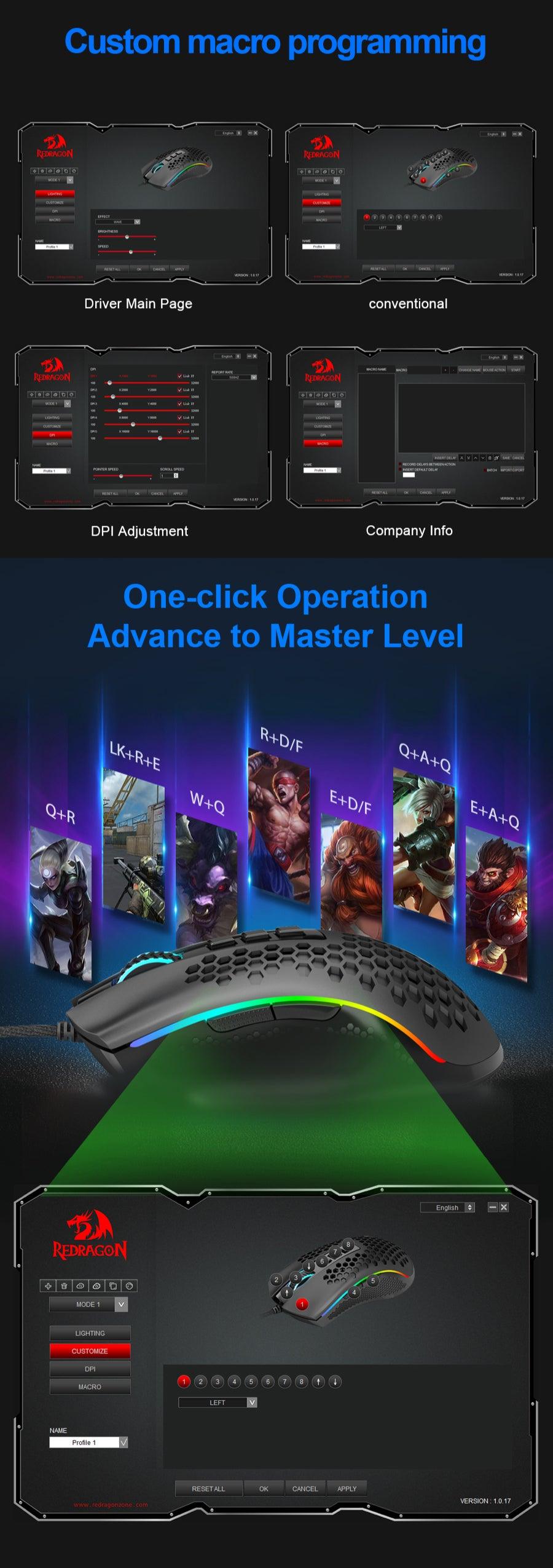 Non-Drag Weave Cable: The mouse is crafted with both its material and cable designed to minimize weight and reduce friction, ensuring a smoother experience.