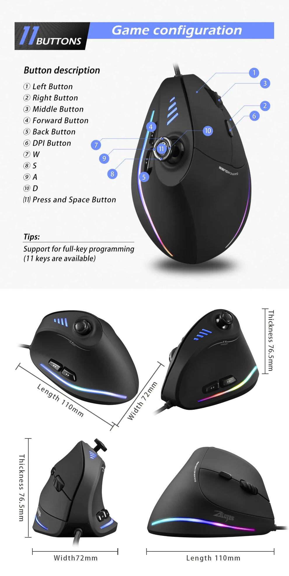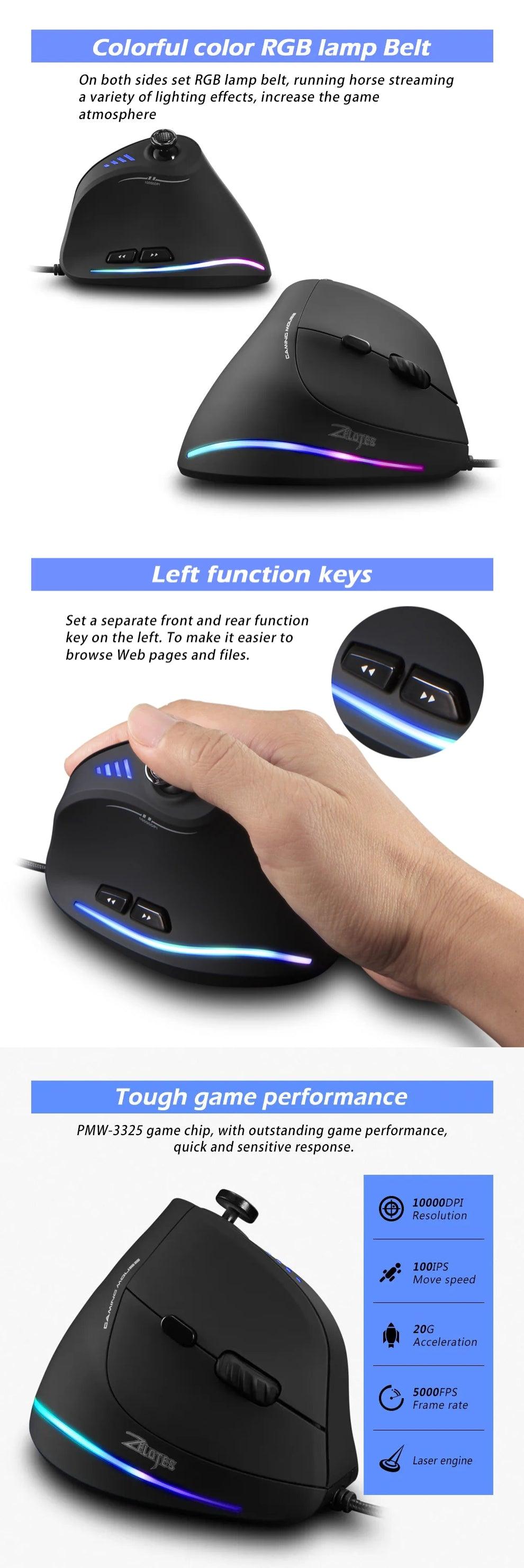 Zelotes Vertical Gaming RGB Mouse with Joystick