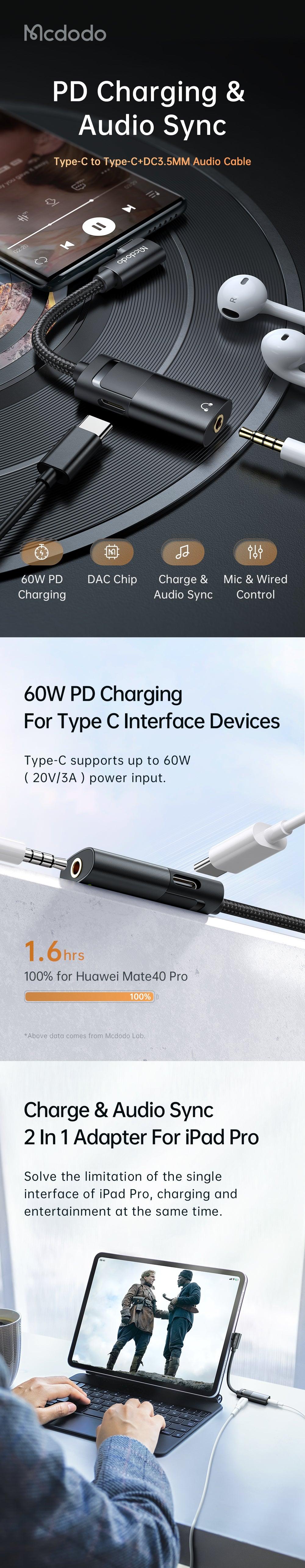 Fast Charging: This adapter and charger are equipped to facilitate PD charging at speeds of up to 60W. You can enjoy your music even while your phone is charging. Please be aware that it might not be compatible with the Quick Charge (QC) feature on certain newer phone models. We recommend using a PD wall charger for optimal charging speed.
