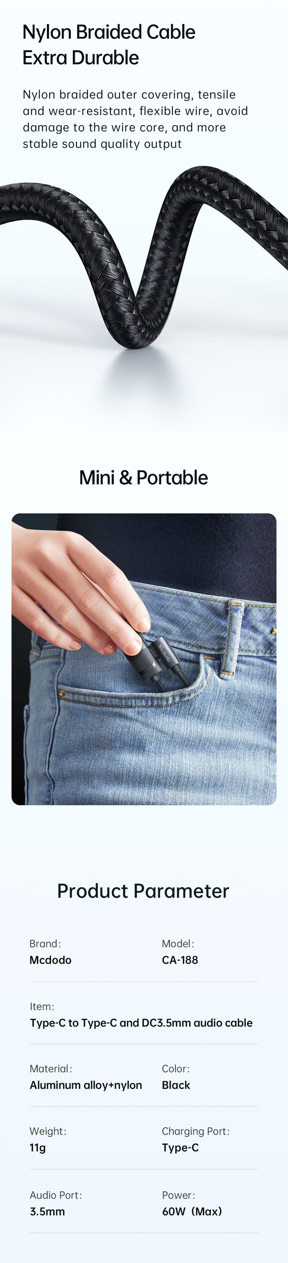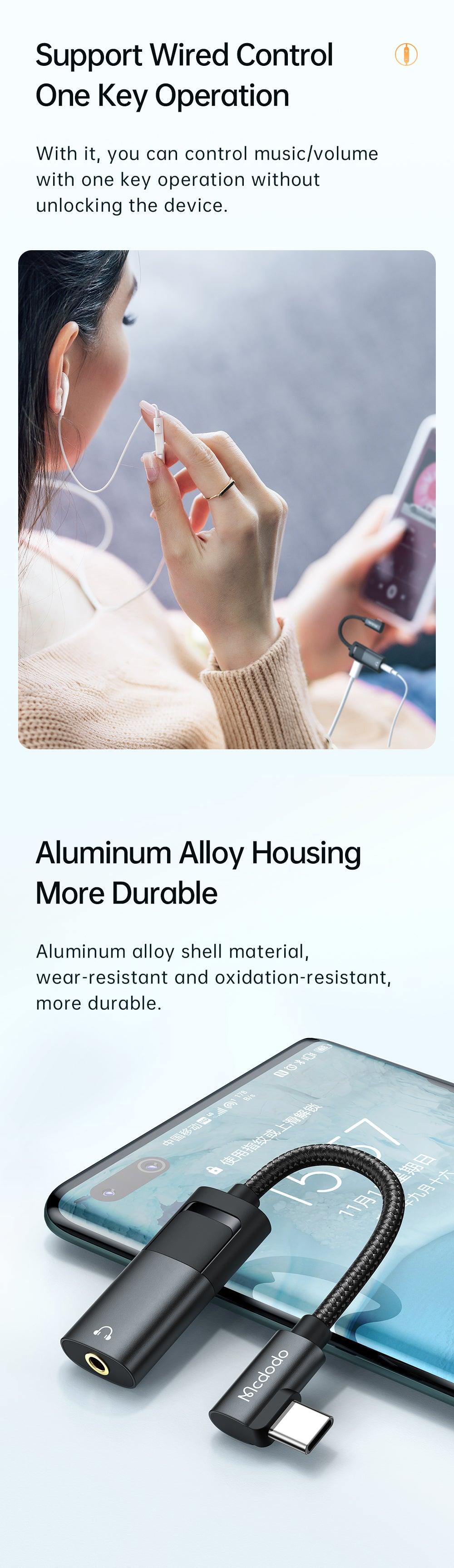 Mcdodo Right Angle Audio Adapter USB C to 3.5mm DAC Earphone Mic 60W PD