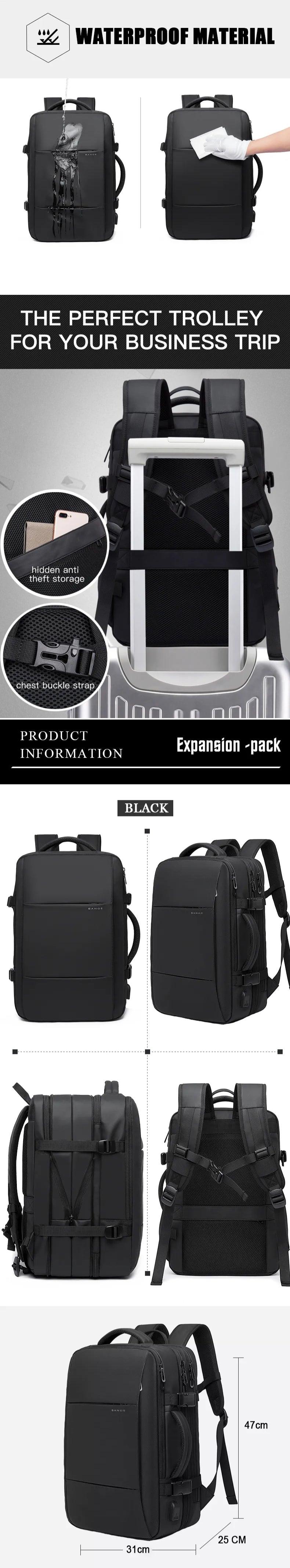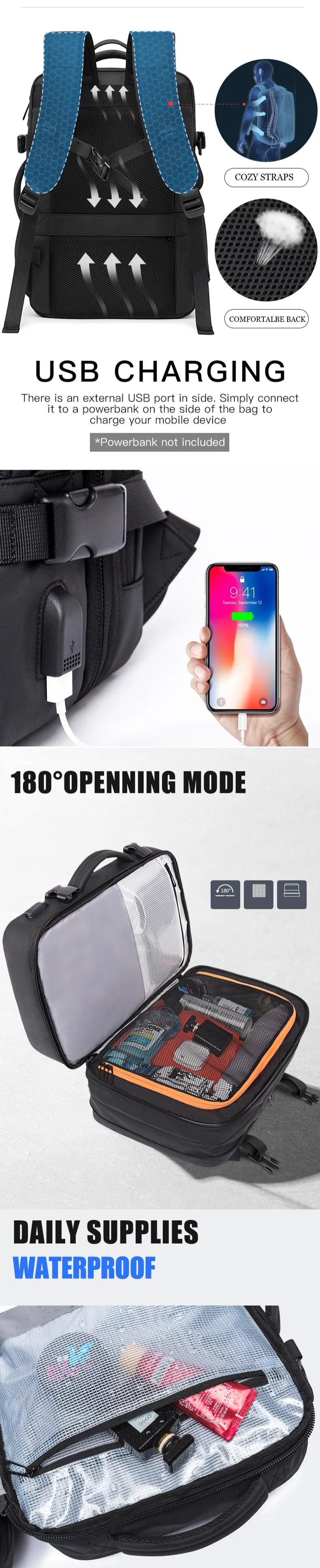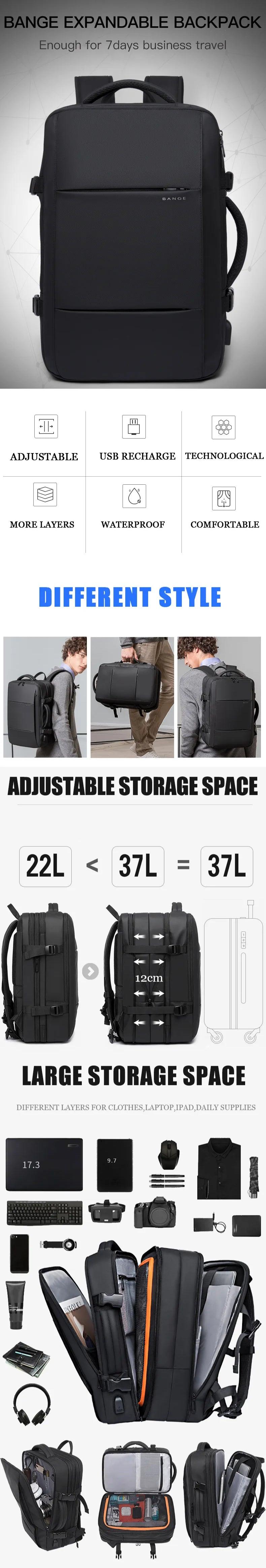 Expandable Travel Backpack: The BANGE backpack for travelling features an expandable design. Its standard storage capacity is 22L, and by unzipping the exterior, it can expand to 37L, making it ideal for your 5-7 day business travels.