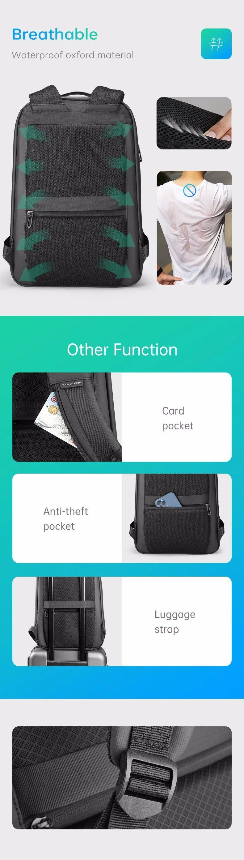 Waterproof Hardshell Material: This laptop backpack is constructed from robust polyester and eco-friendly Oxford fabric for superior quality, ensuring exceptional resistance to tears and water. It maintains its shape without deformation even under pressure.