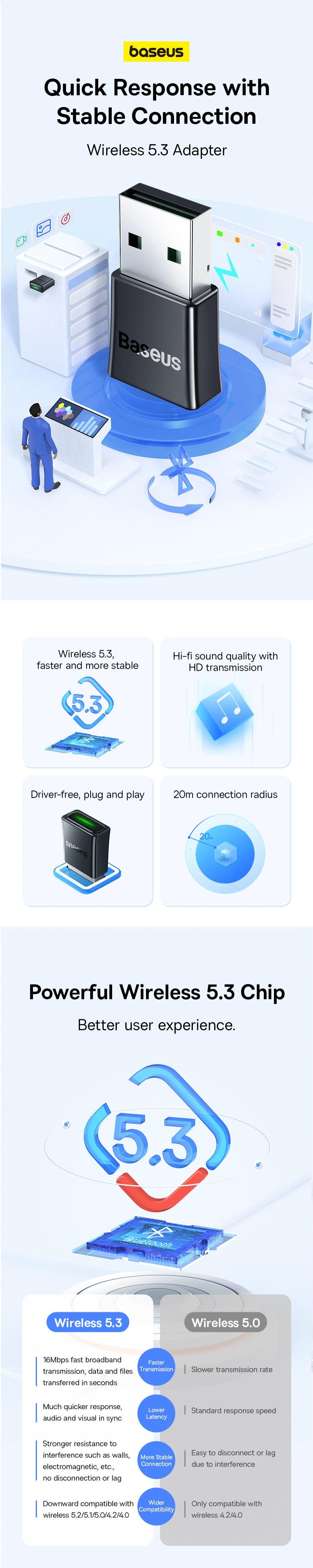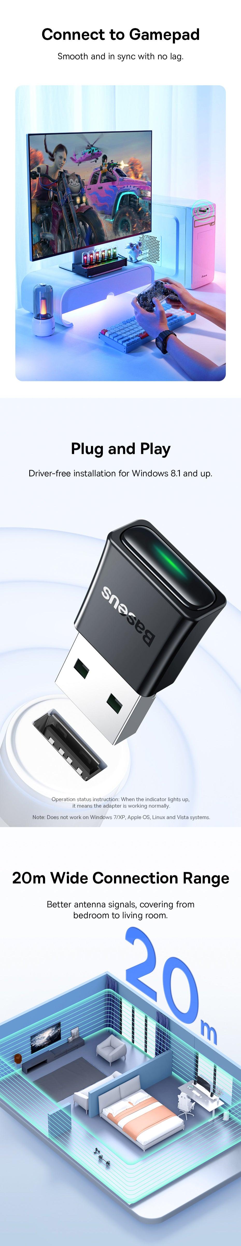 Baseus USB Bluetooth 5.3 Wireless Dongle Adapter Receiver for PC
