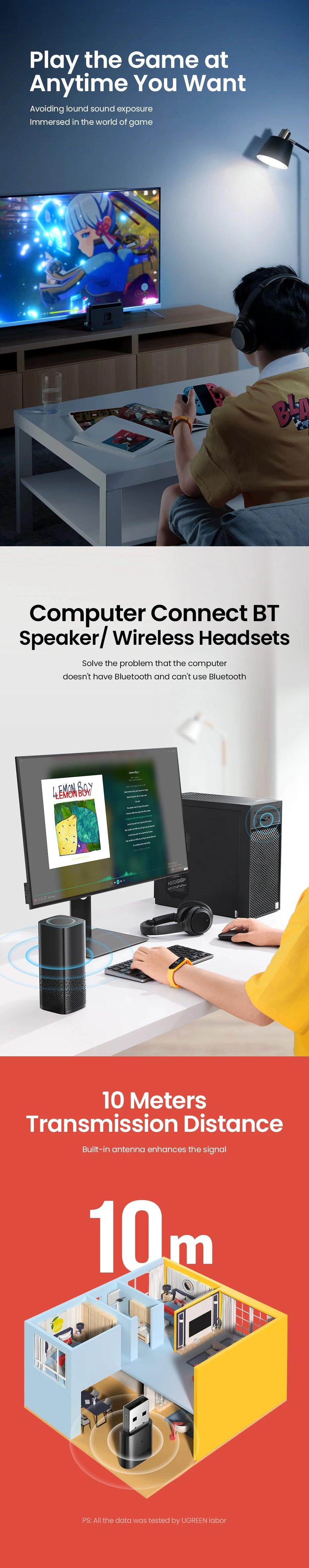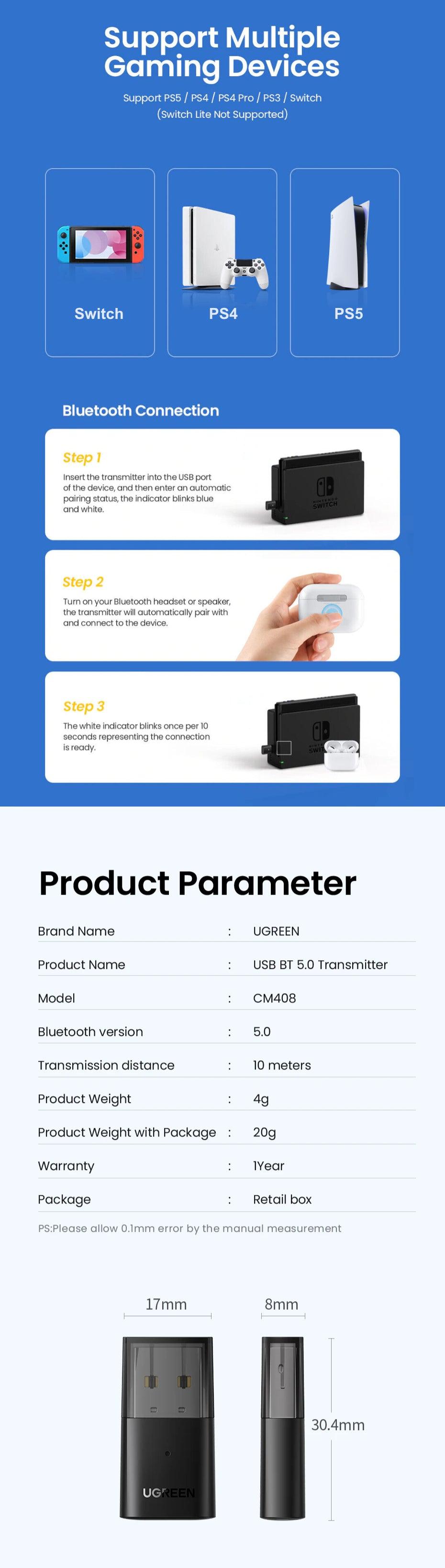 Ugreen Bluetooth 5.0 USB Transmitter Audio Adapter for Nintendo Switch PS4 PS5