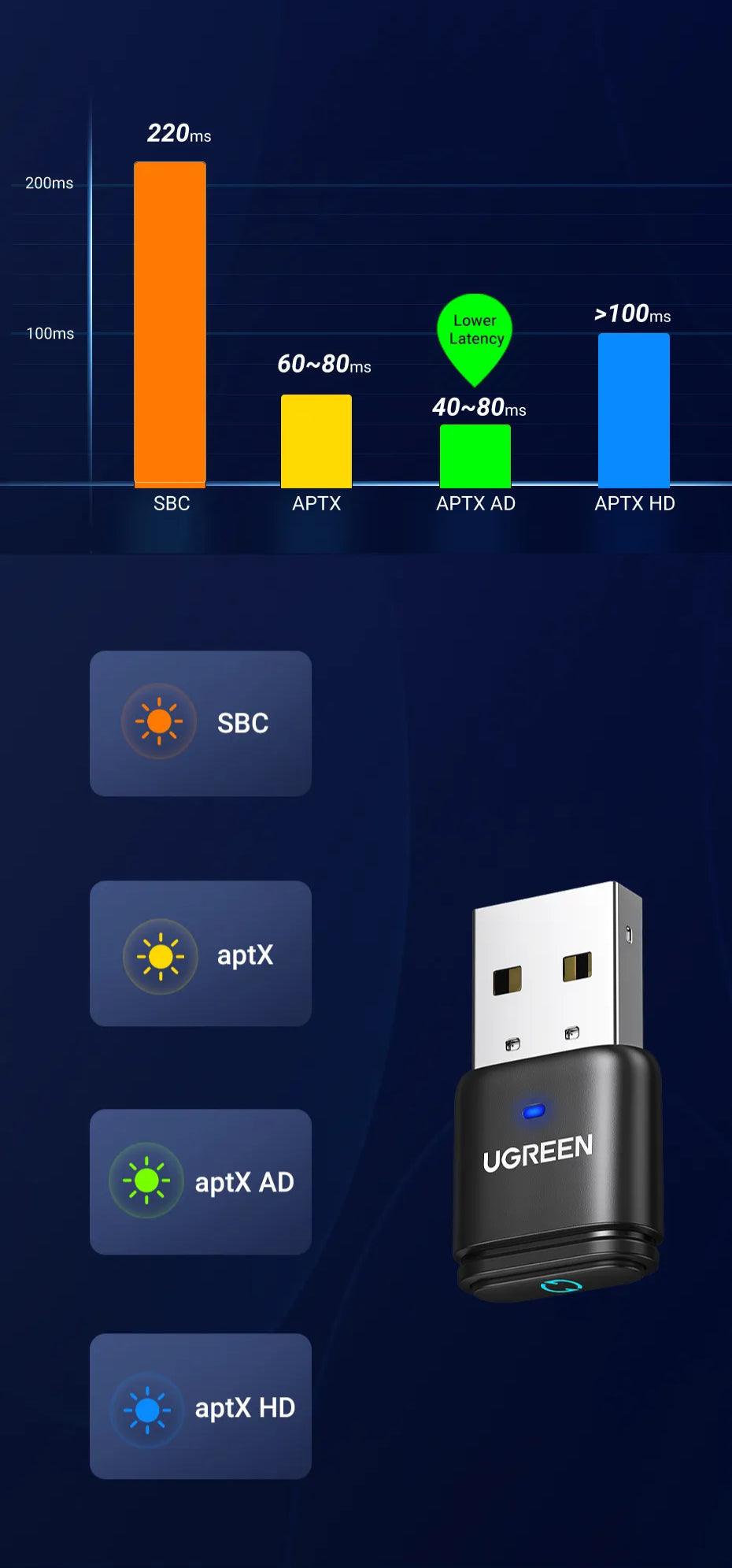 Introducing Bluetooth 5.3: The Ugreen V5.3 PC Bluetooth adapter features the newest Bluetooth 5.3 technology, enhancing your PC and PS5/PS4/Switch with Bluetooth functionality. This enables seamless connections with Bluetooth headphones and speakers, offering faster data transmission, improved efficiency, and reduced latency. It's also compatible with earlier Bluetooth versions such as 4.0, 5.0, 5.1, and 5.2.