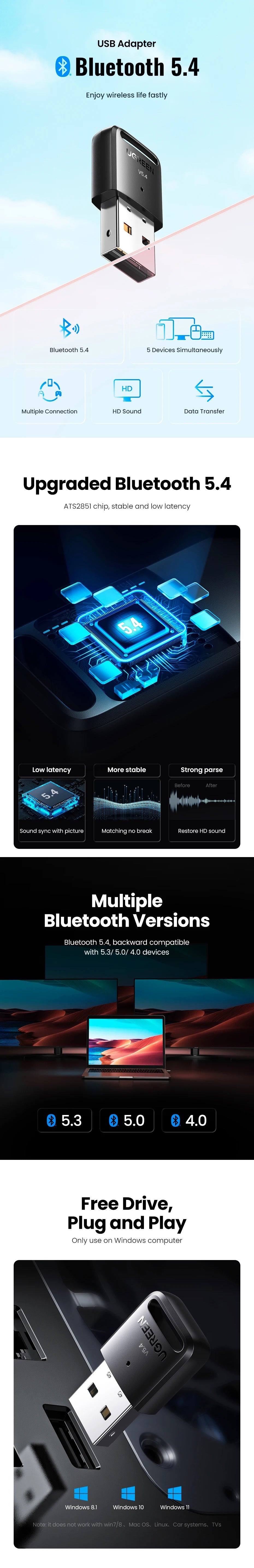 Simple Installation Process: The Ugreen V5.4 PC Bluetooth adapter is compatible with Windows 11/10/8.1, and it offers a hassle-free Plug and Play experience for these operating systems.