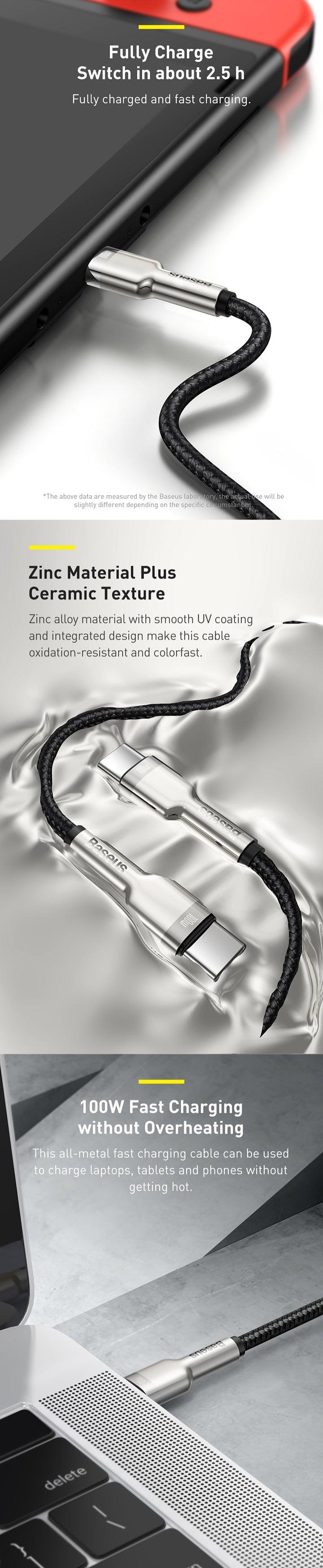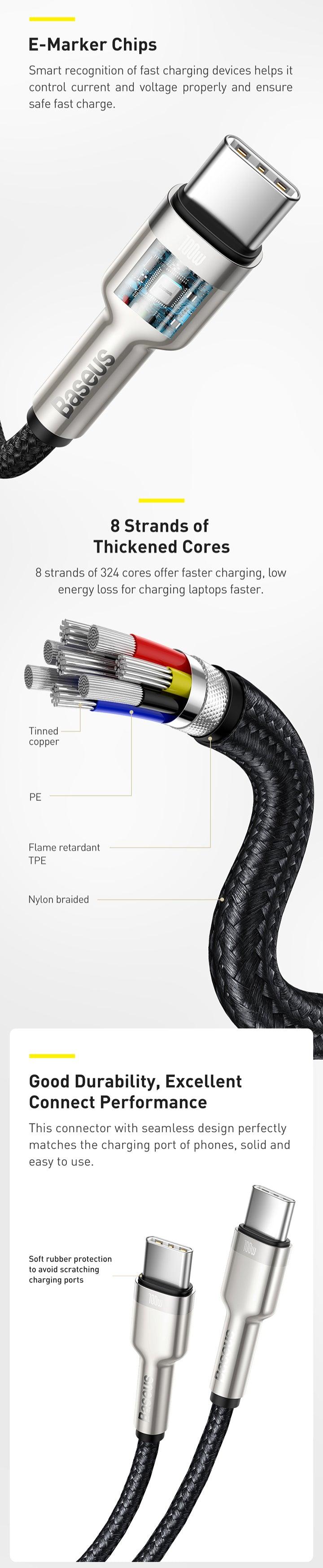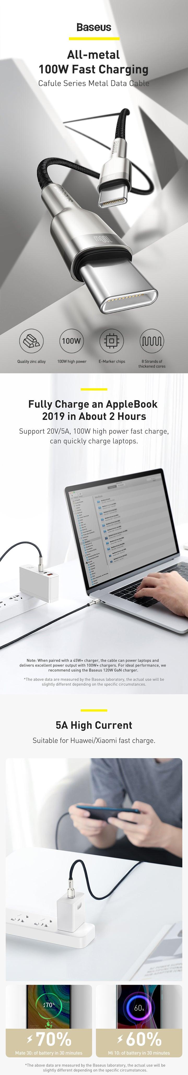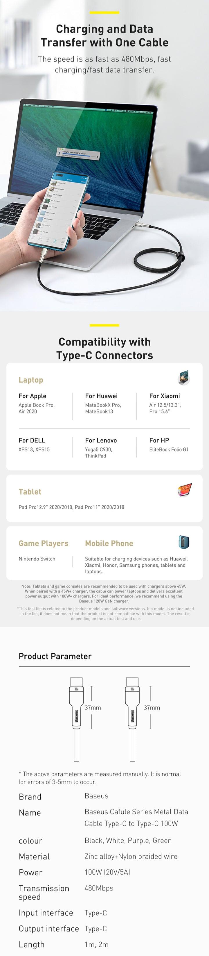 Baseus Cafule Metal USB C to USB C Fast Charger Cable 100W PD 5A Charging