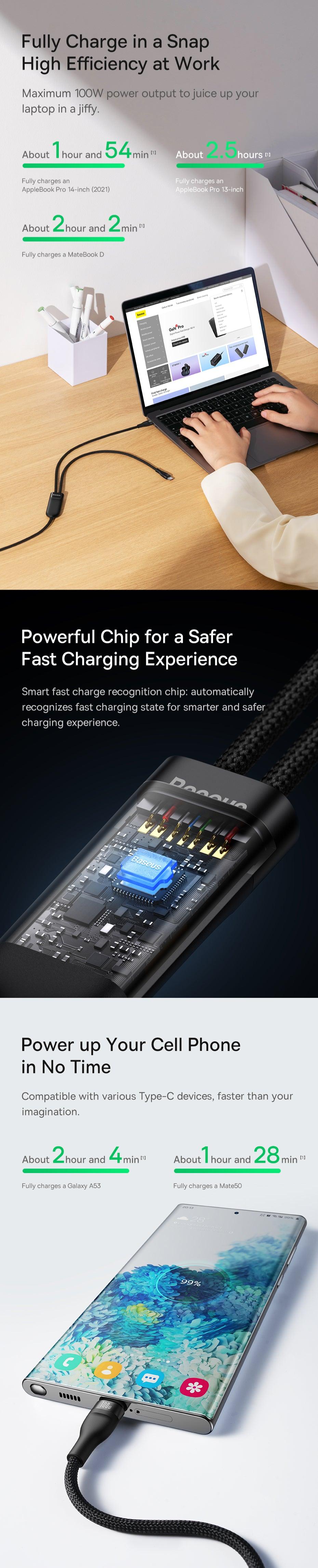 Baseus One-for-Two Multi USB Fast Charger Cable USB C to Dual USB C 100W PD 5A Charging