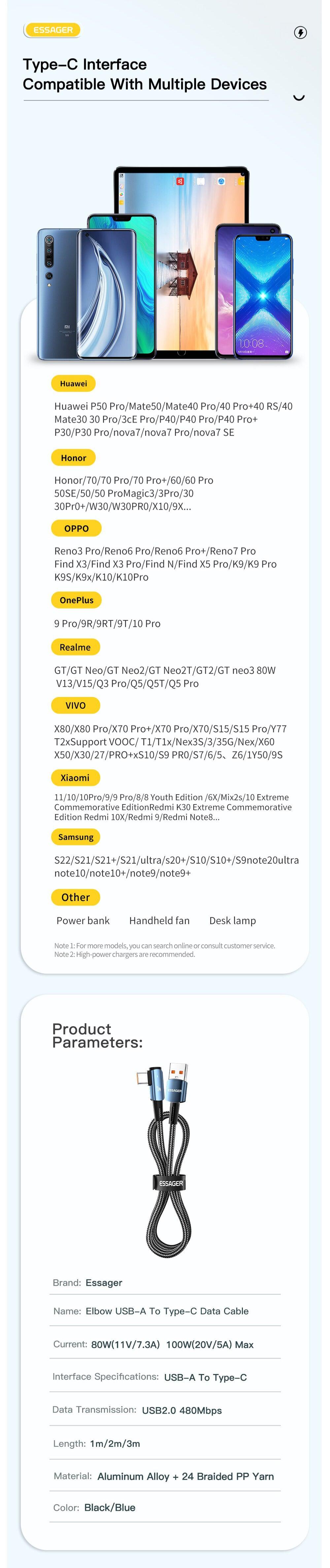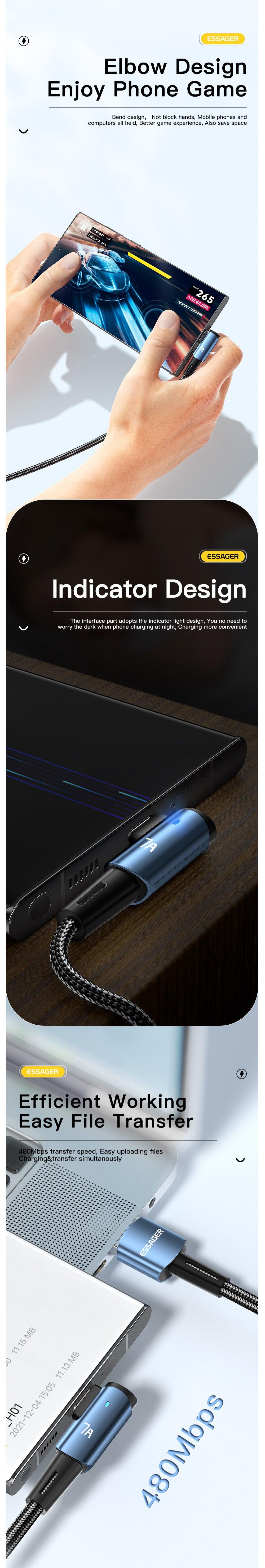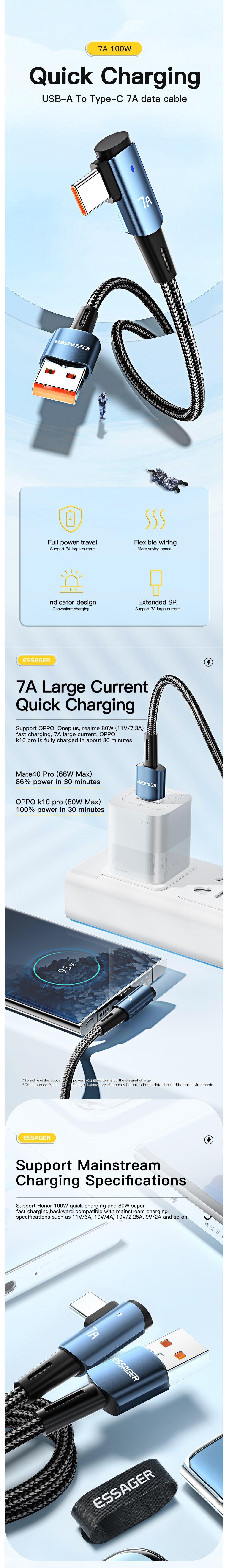 Essager Right Angle USB C Fast Charger Cable 100W PD 7A Charging