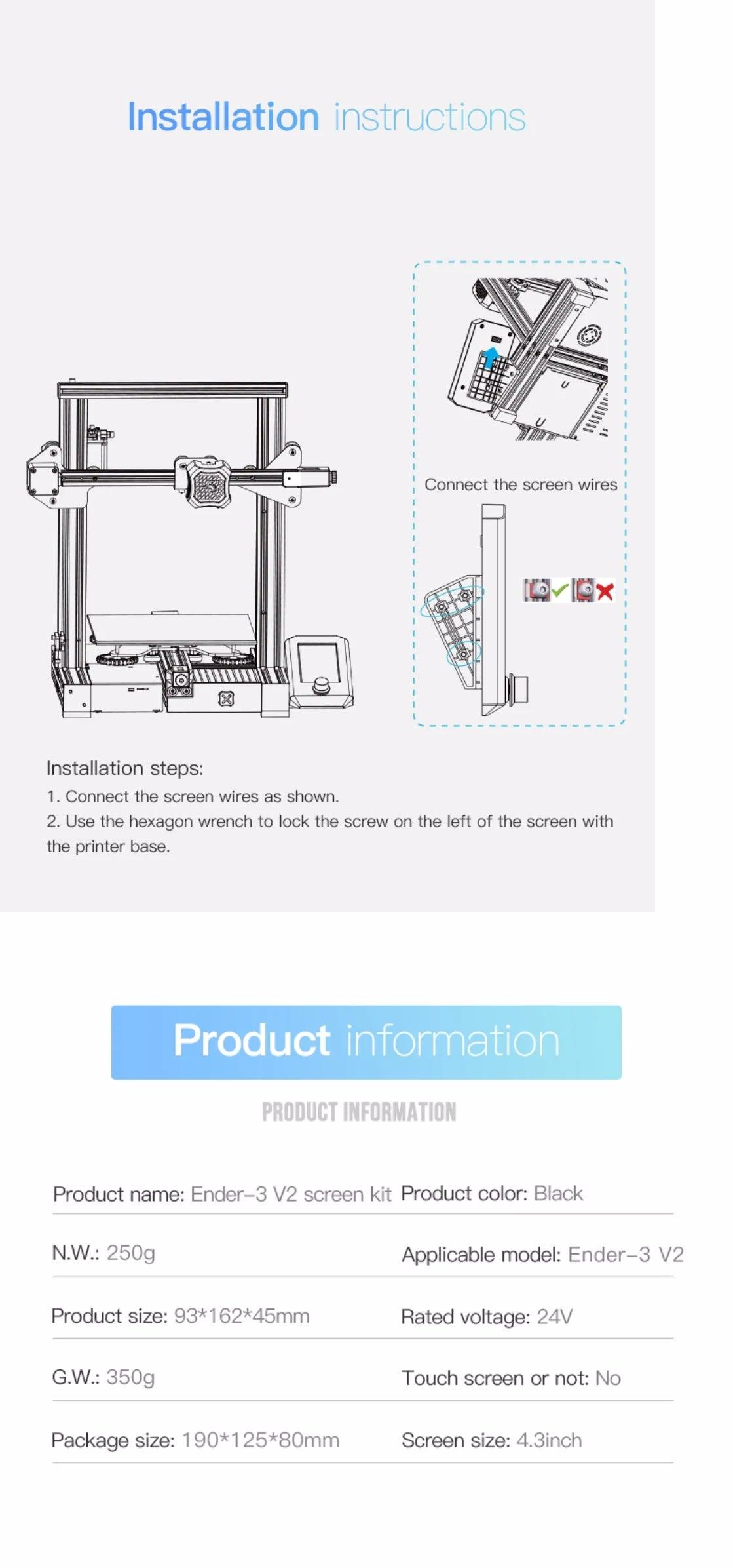 This display is exclusively designed for 32-bit motherboard printers. It is specifically utilized for the Ender 3 V2 3D printer. However, if you decide to update your motherboard firmware, it can also be employed for the Ender 3 and Ender 3 Pro. Ensure that you flash your firmware to the Ender 3 V2 firmware, and for more details, refer to the following description.