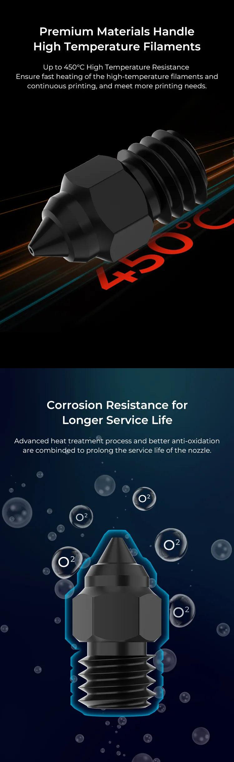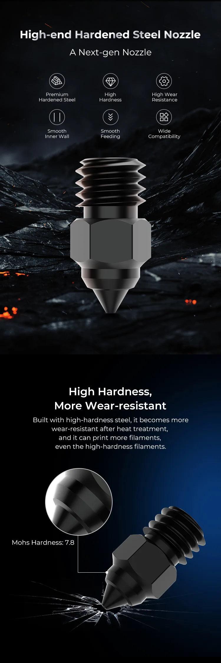 • Enhanced Durability with Superior Hardness: Creality nozzles are crafted from premium hardened steel, boasting an impressive Mohs hardness rating of up to 7.8. This robust construction ensures exceptional resistance to high temperatures and increased wear resistance. Ideal for high-temperature printing settings, our nozzles deliver an extended lifespan, providing reliable performance even in demanding environments.