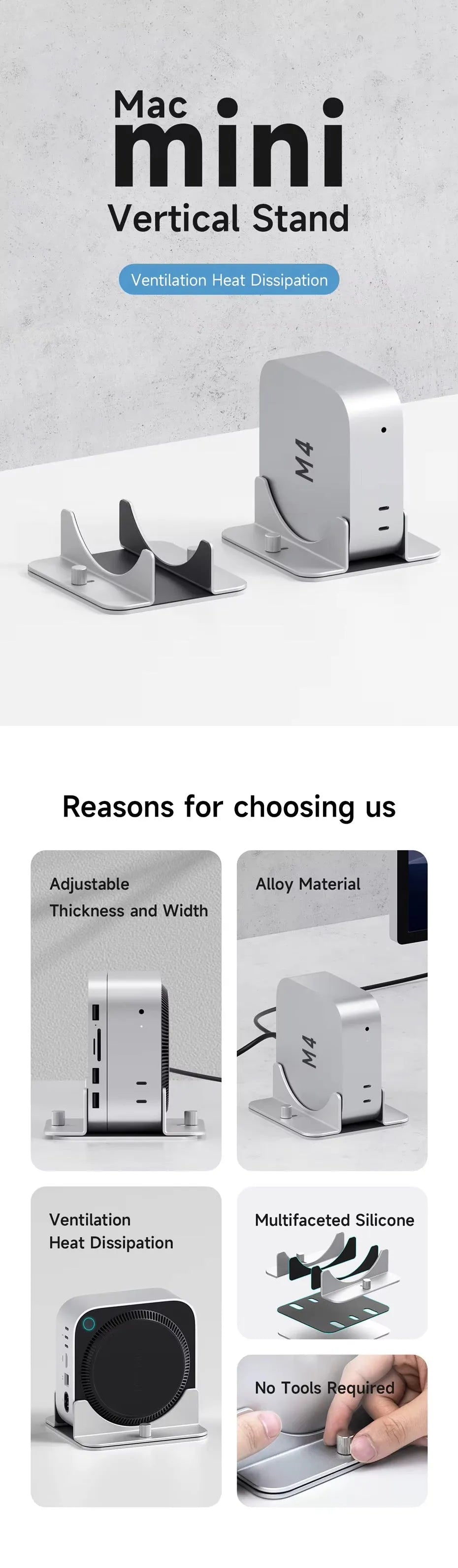 Durable Silicone: Provides stability, prevents slipping, and protects the Mac mini from scratches.