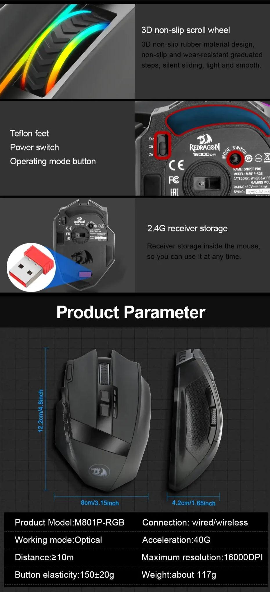 Redragon Sniper Pro M801P RGB Wireless Gaming Mouse