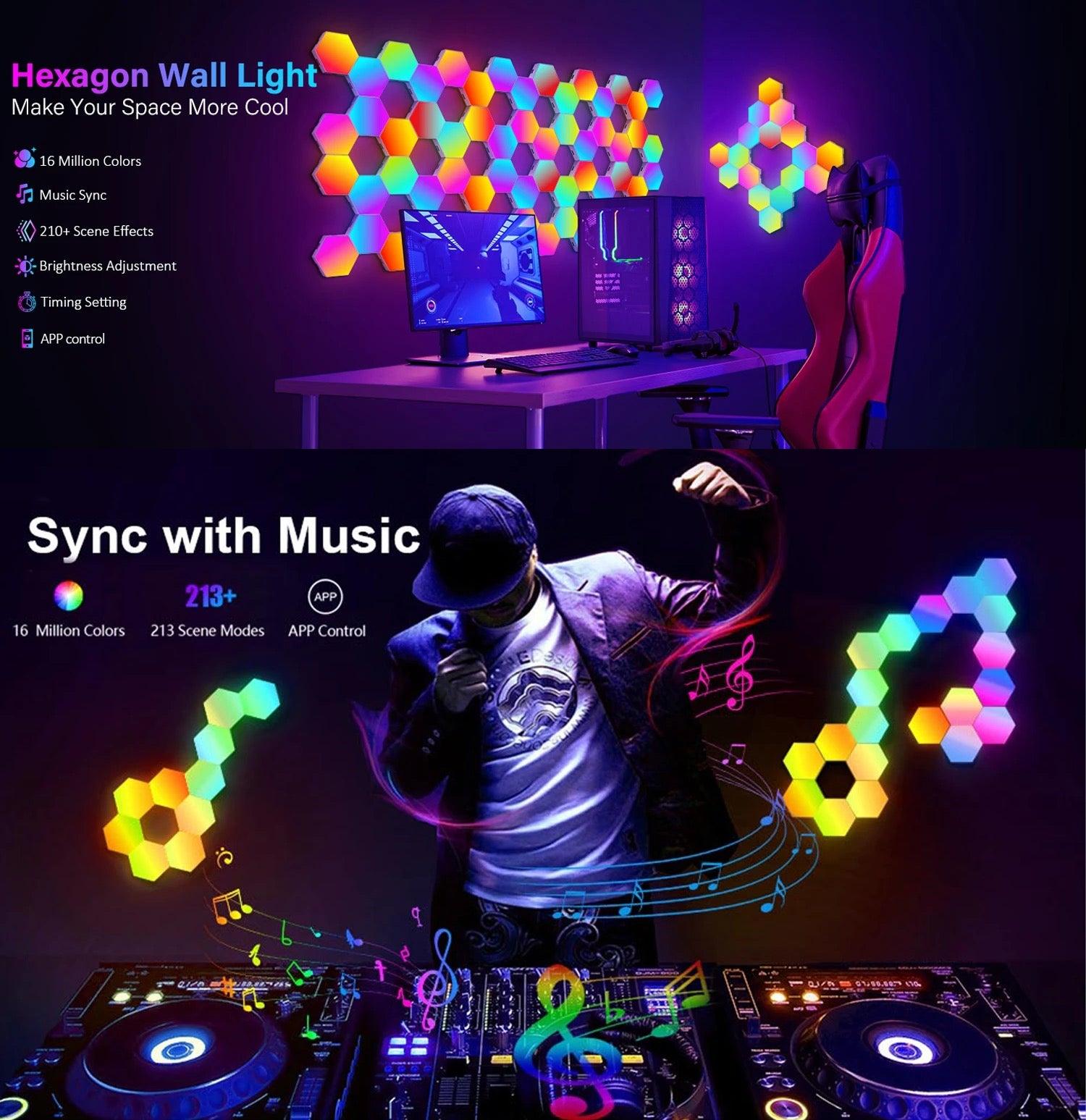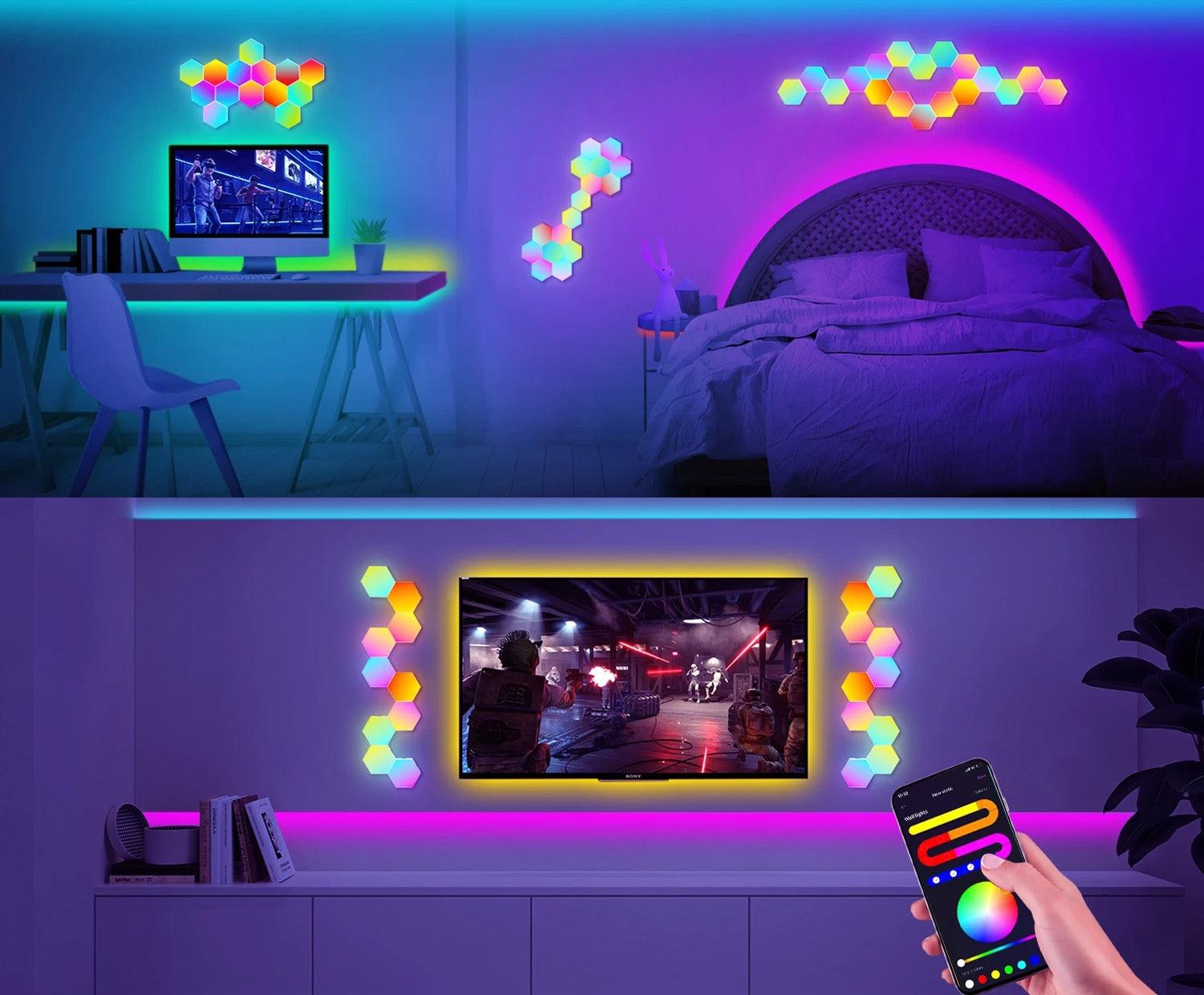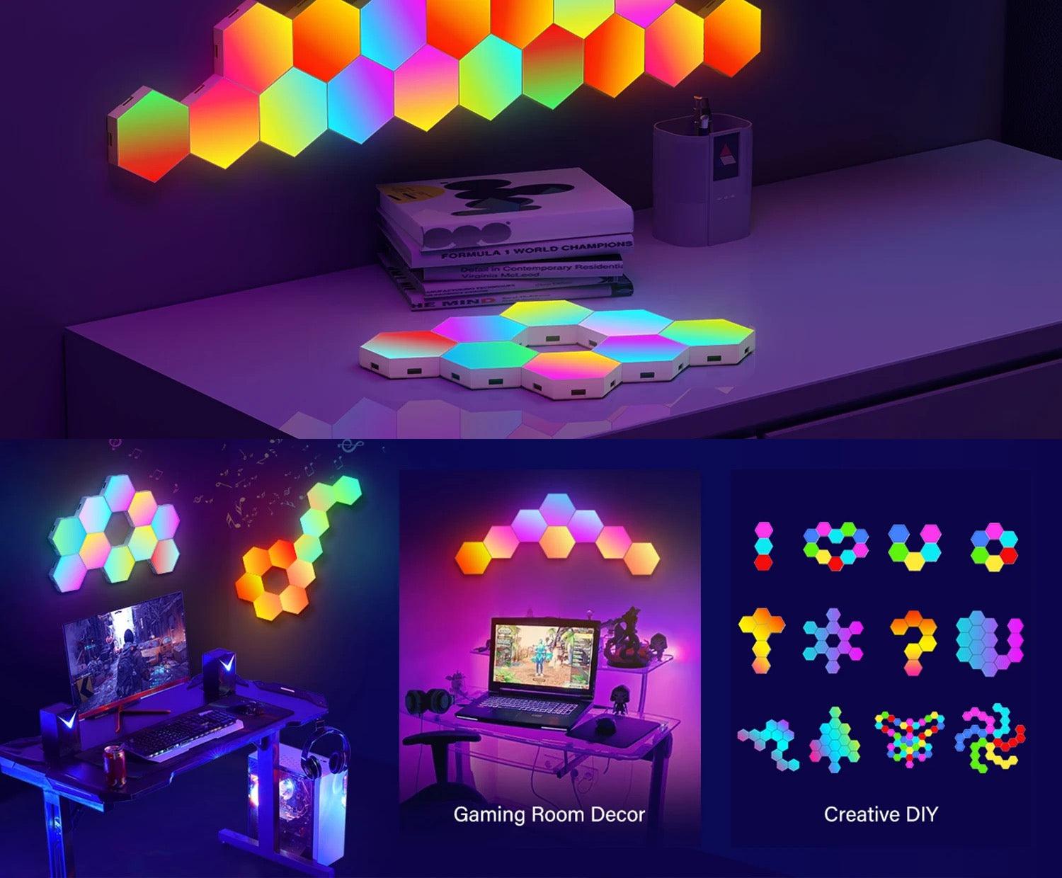 Groove to the Beat: These RGB hexagonal LED lights enhance your gaming experience by syncing with surrounding music or audio from your phone. Ideal for parties, game rooms, and dance events, they create an immersive and dynamic atmosphere.
