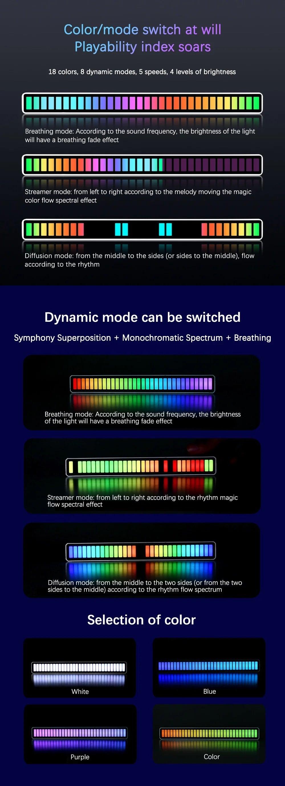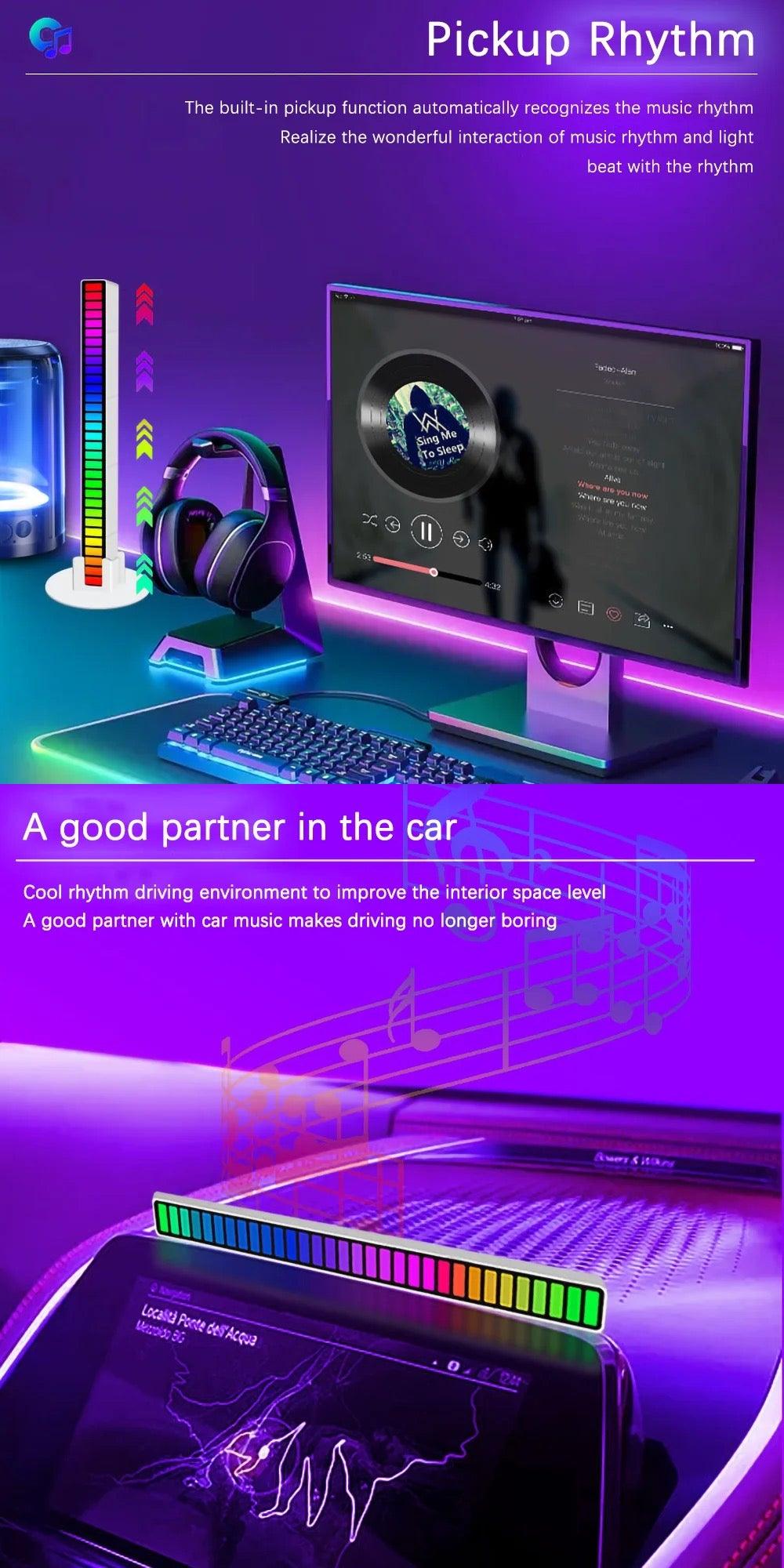 Noise Cancellation: Equipped with automatic gain technology, the sound light bars block out surrounding noise interference, ensuring the LEDs sync precisely with the music rather than background sounds.