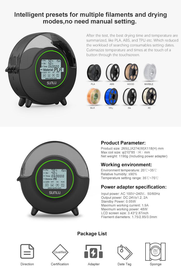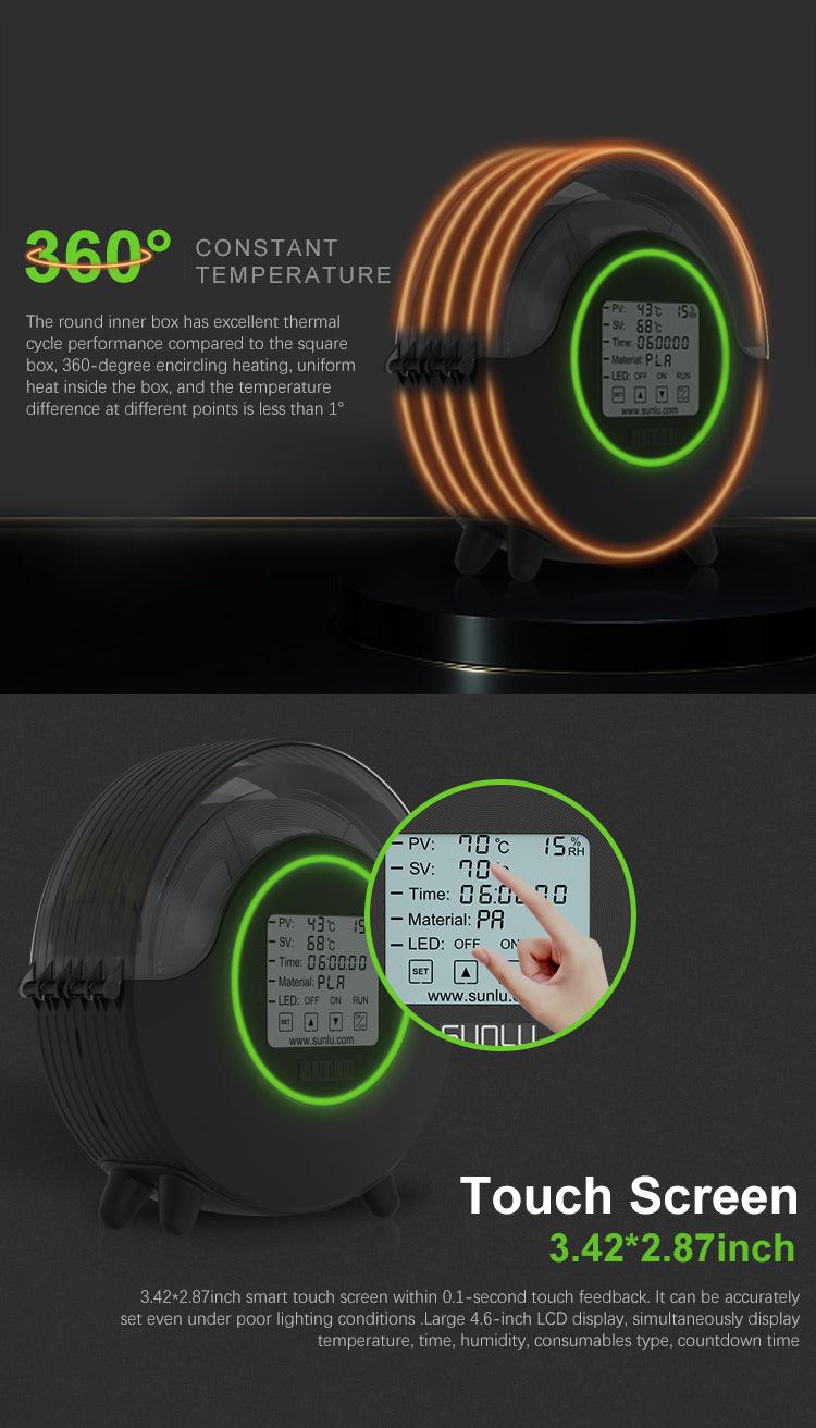 SUNLU S2 3D Printer Filament Dryer Box, All-Round Heating with 4.6" Touch Screen