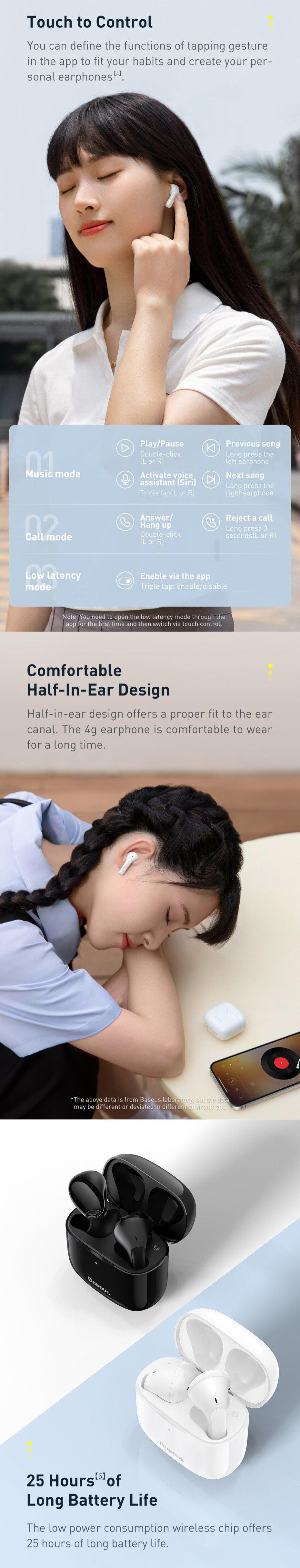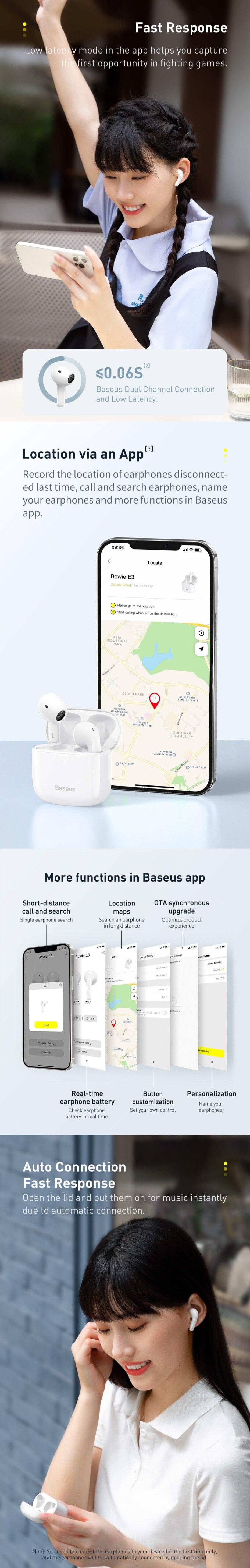 Low Latency Mode: The Baseus Bowie E3 Earphones enable low latency mode to enjoy AV synchronisation and audio smoothness.