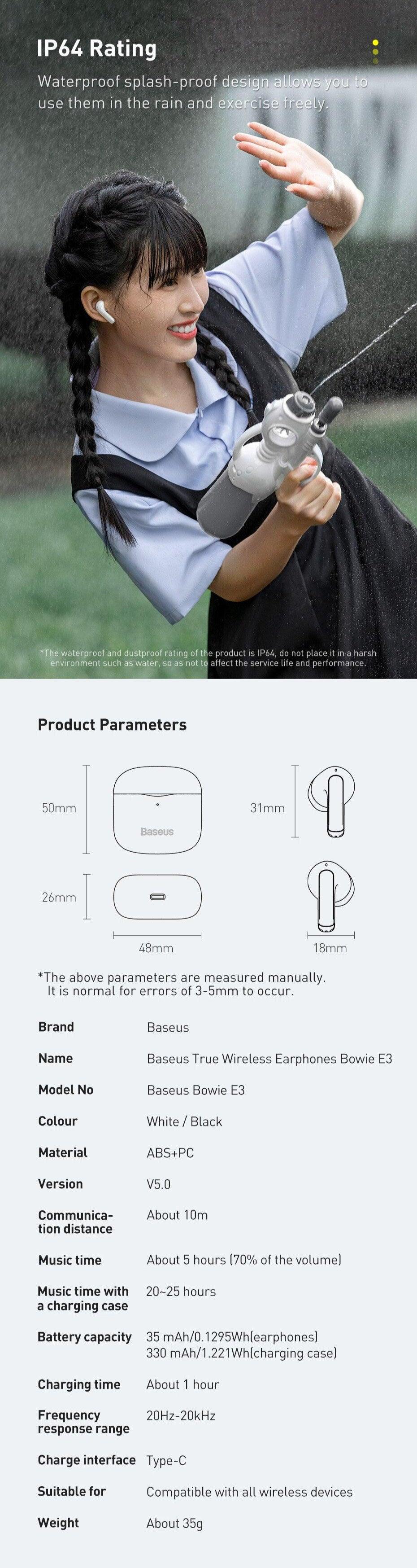 Baseus Bowie E3 Wireless Bluetooth 5.0 Earphones - IP64