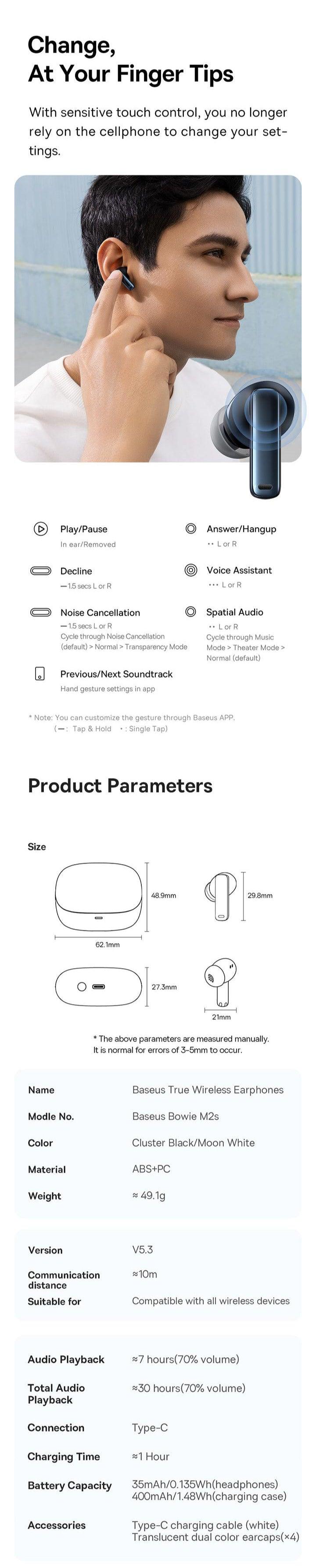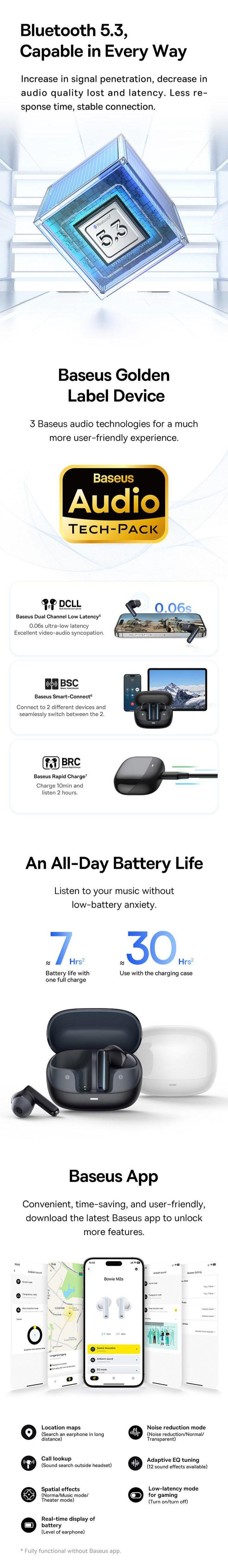 Wireless Connectivity Revolution: Say goodbye to messy cables! Thanks to Baseus, tangled wires become a thing of the past. With the utilisation of cutting-edge Bluetooth 5.3 technology in the Bowie M2s earphones, experience a seamless and rapid wireless connection that ensures stable performance. Bid farewell to concerns about audio quality loss or annoying delays.