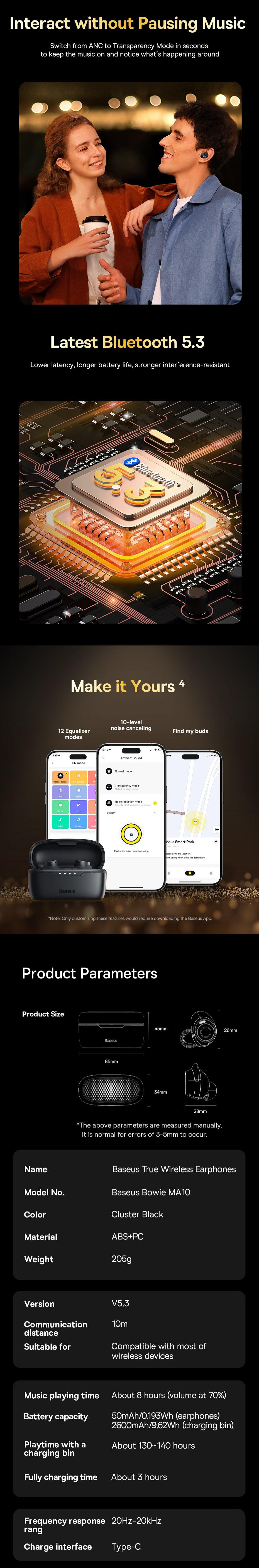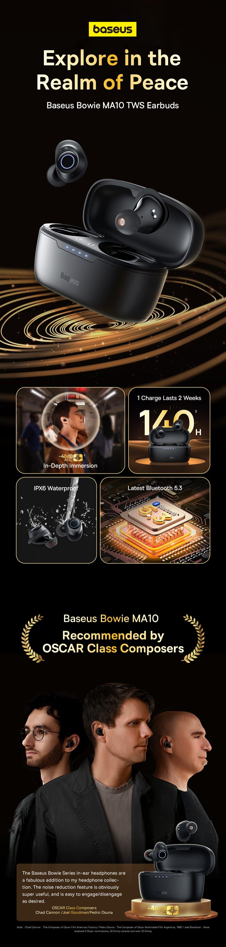 Baseus Bowie MA10 ANC Wireless Bluetooth 5.3 Earphones - IPX6 Waterproof