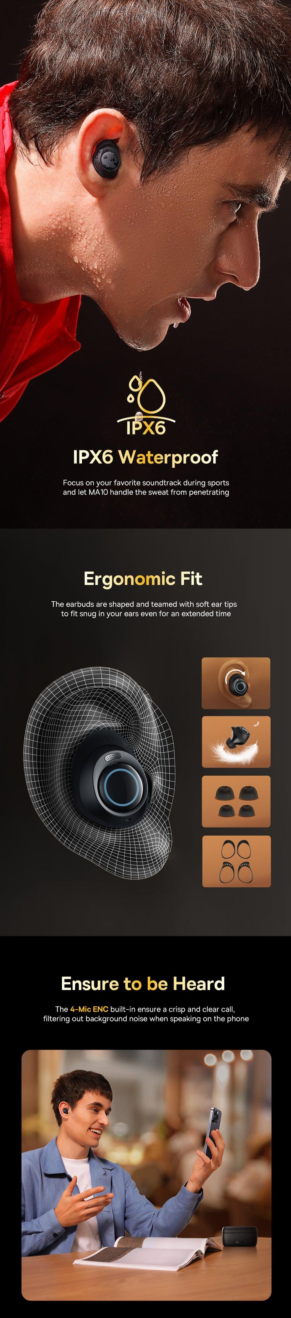 IPX6 Waterproof: The Baseus Bowie MA10 earphones are resistance against sweat, rain, & dust, sports enjoyment has never been easier.