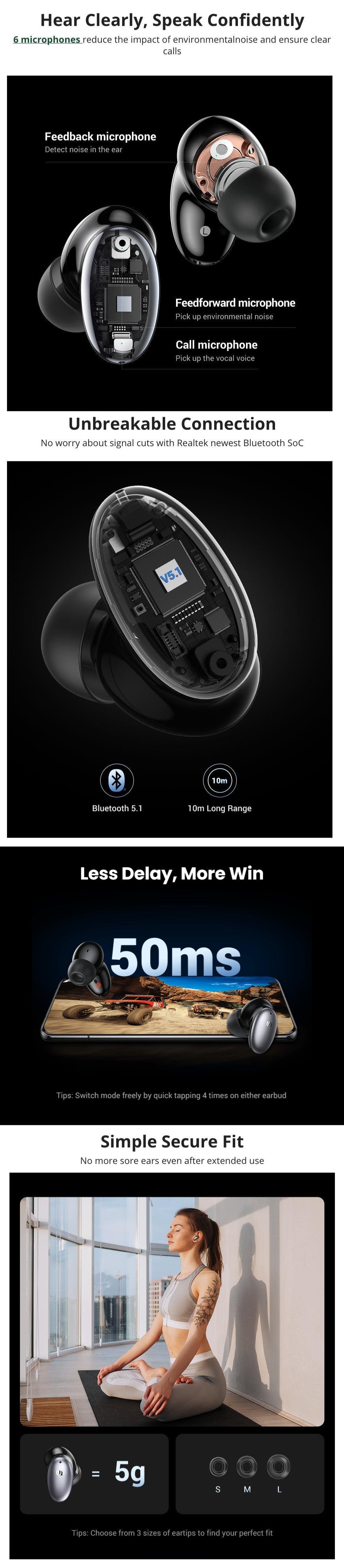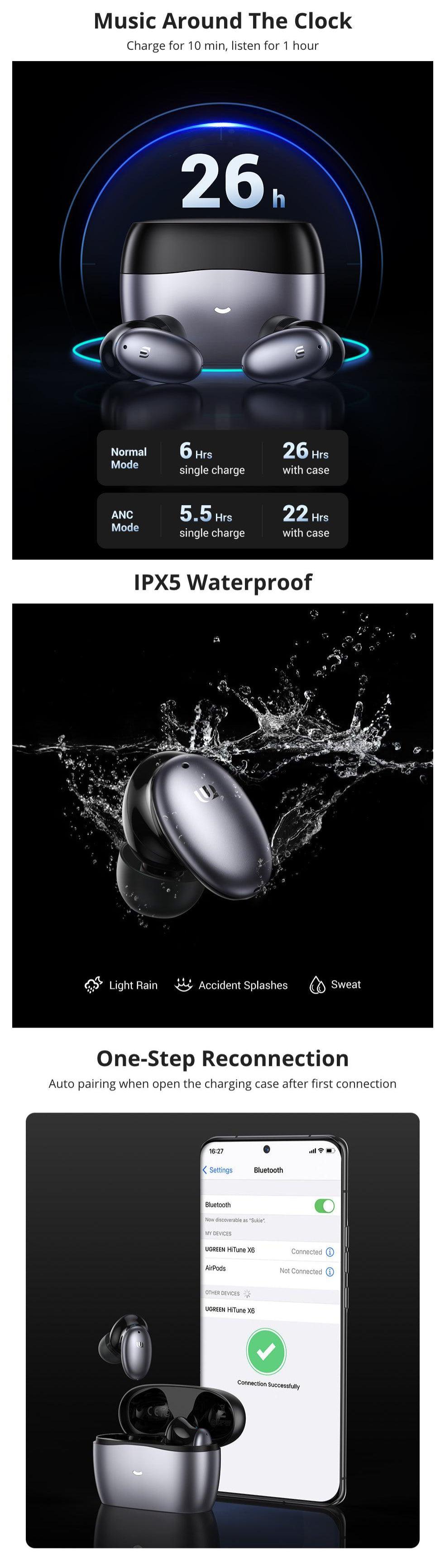 Ugreen HiTune X6 ANC Wireless Bluetooth 5.1 Earphones Active Noise Cancellation - IPX5