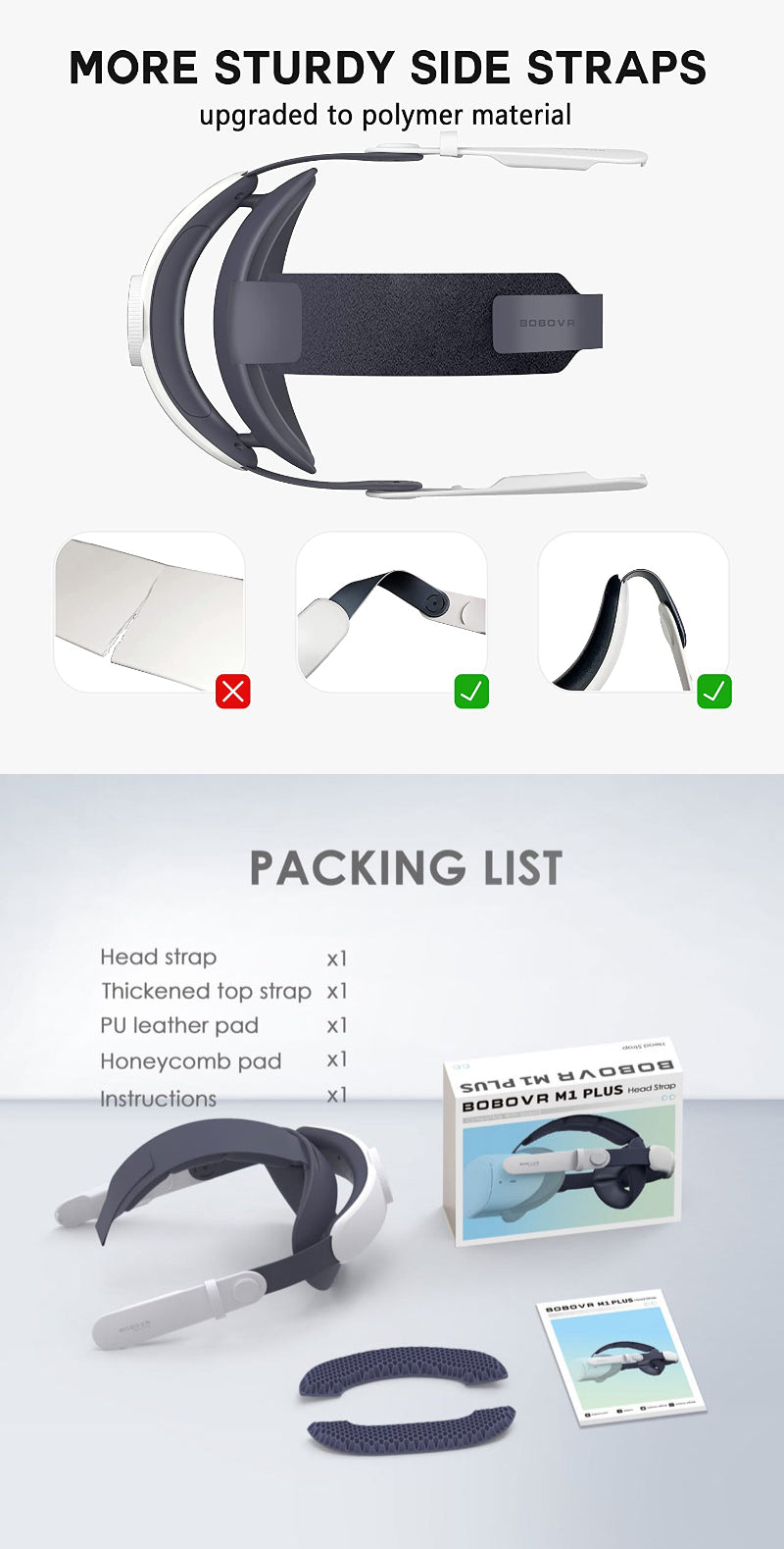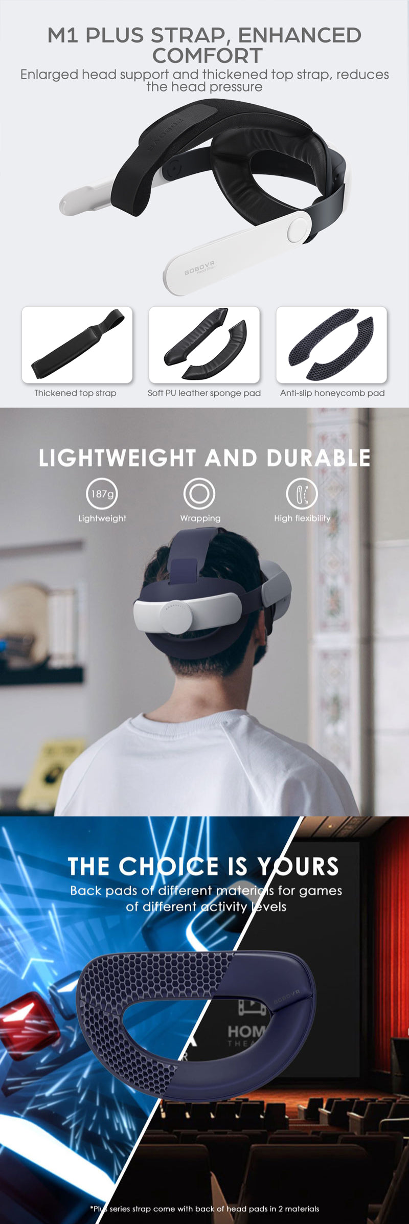 Lightweight and Long-lasting: The head strap weighs merely 187g, making it lighter than the majority of similar straps available on the market. The side straps are crafted from an enhanced polymer material, known for its exceptional toughness and strength. Furthermore, newly upgraded plus strap features an extended back-of-the-head support that is more accommodating than the standard strap, ensuring stability and comfort for a wide range of head sizes.