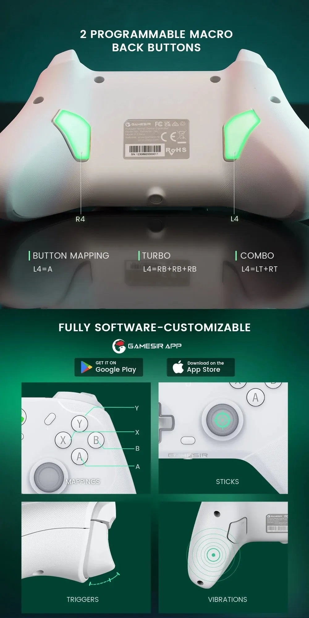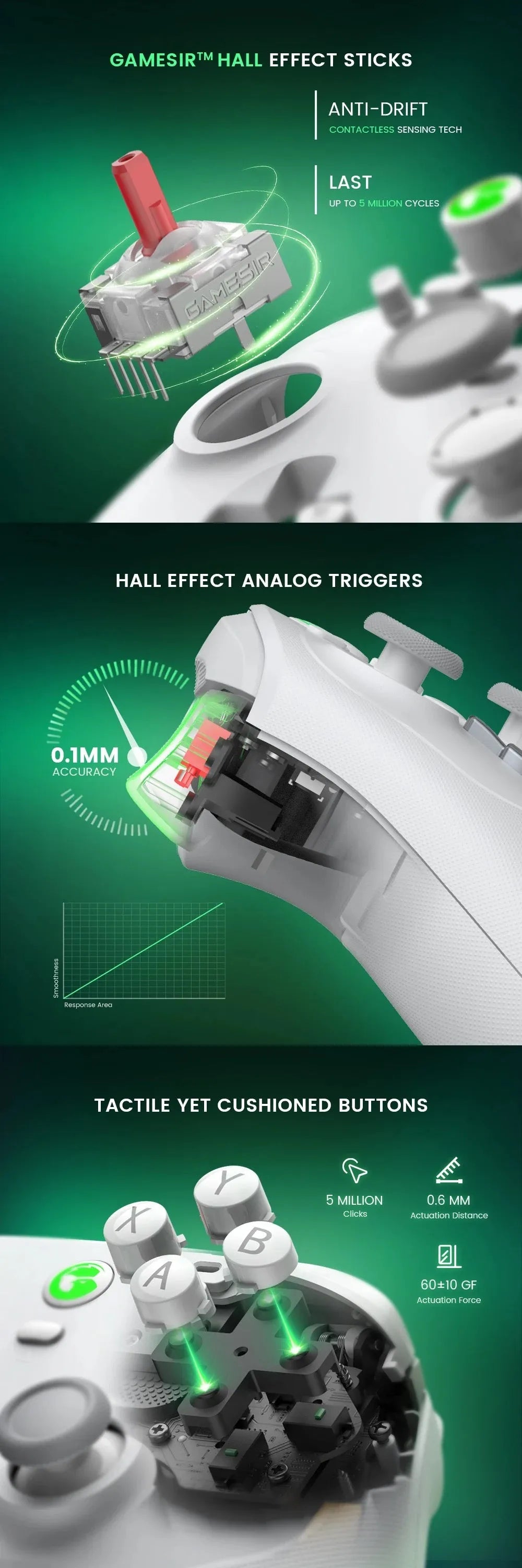 Hall Effect Sticks, No Drifting: Designed for precision and anti-drift performance, the GameSir Hall Effect sticks ensure enhanced consistency and smoothness, maximising your performance with specially optimised algorithms. Experience NO DRIFTING and NO DEAD ZONE.
