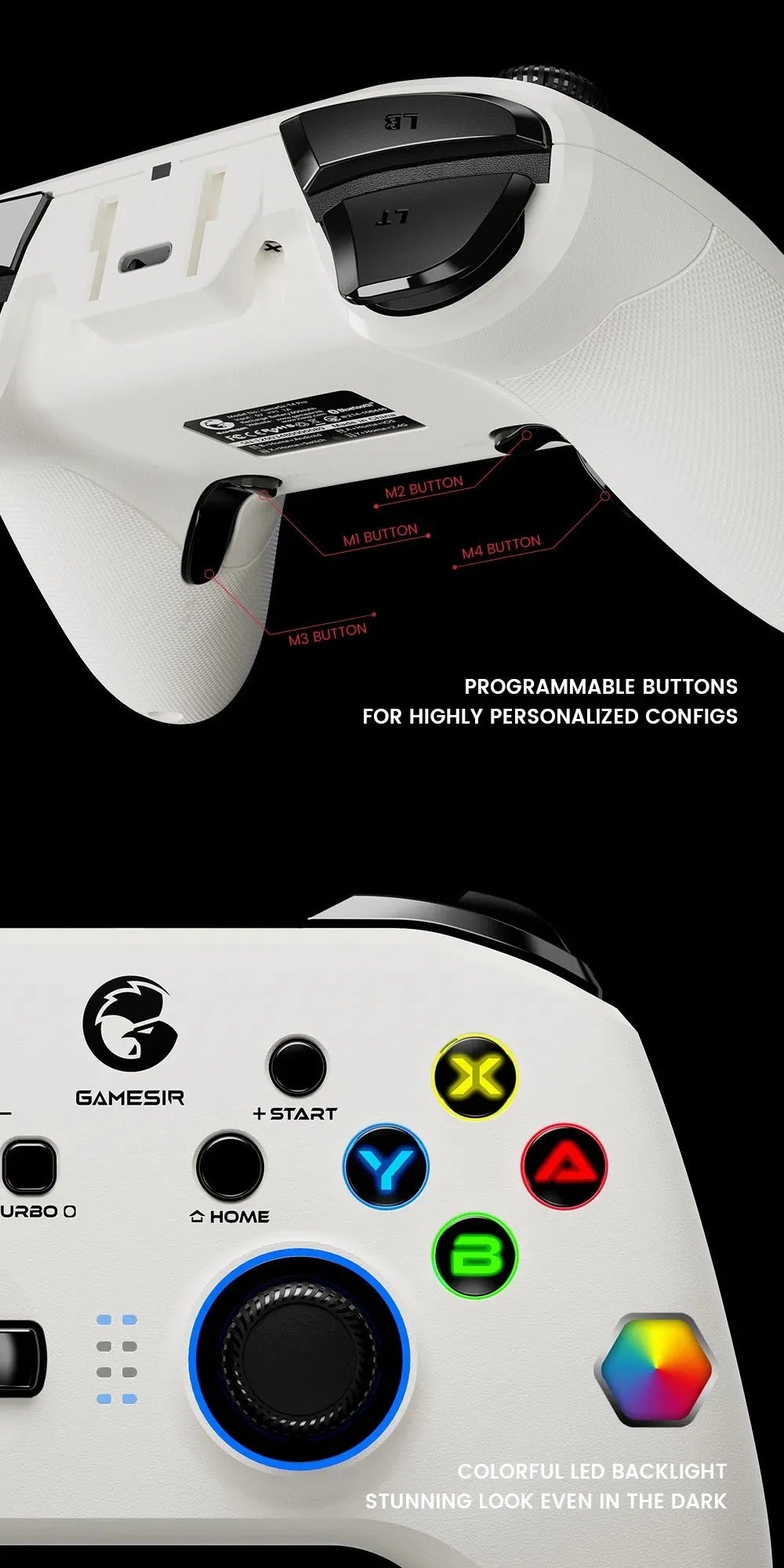Vibrant LED Backlighting: The GameSir T4 Pro Bluetooth controller features dynamic LED backlighting that adds a burst of colour to your gaming setup. The ABXY buttons and right joystick are beautifully illuminated, ensuring a visually striking experience even in dim environments, and enhancing your overall immersion and enjoyment.
