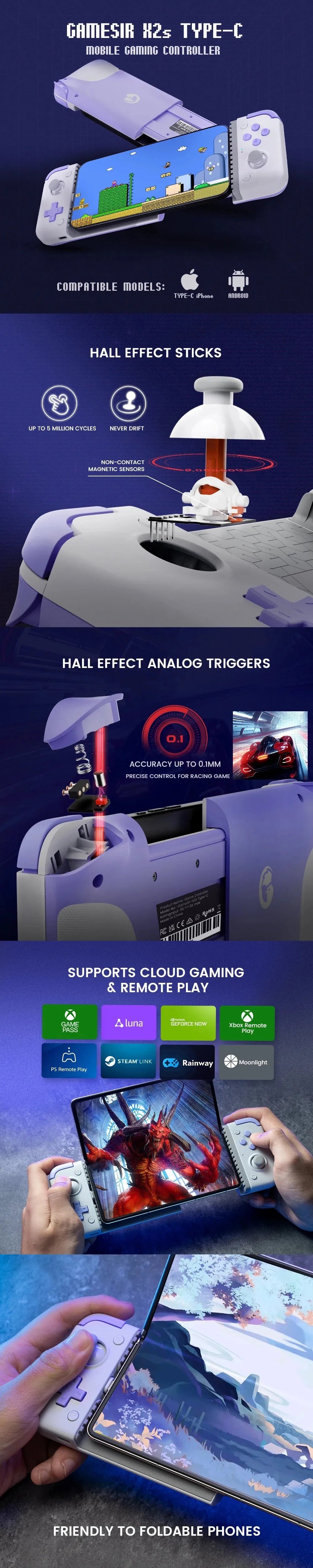 Enhanced Compatibility: Introducing the latest 2024 upgrade! Gamesir X2s Type-C ensures seamless operation with iPhone 15 series, Android, HarmonyOS, folding screen, and other Type-C mobile phones. Note: Not compatible with iPhone 14 Series or earlier models.