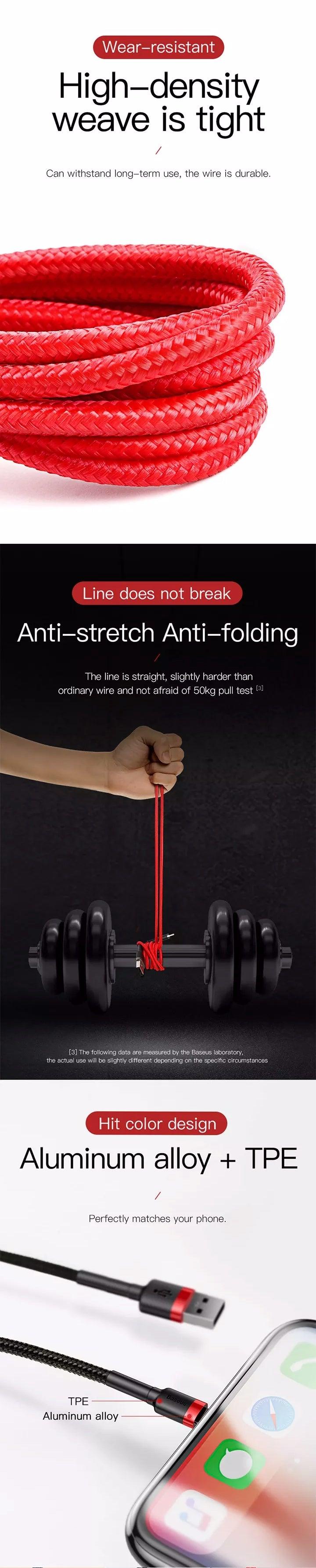 Charge & Data Transfer: High-quality copper wires excel in maintaining signal quality and enhancing overall durability. Enjoy rapid charging speeds of up to 2.4A (Please note that 2m and 3m cables support 1.5A), along with a swift data transfer rate of 480Mbps.