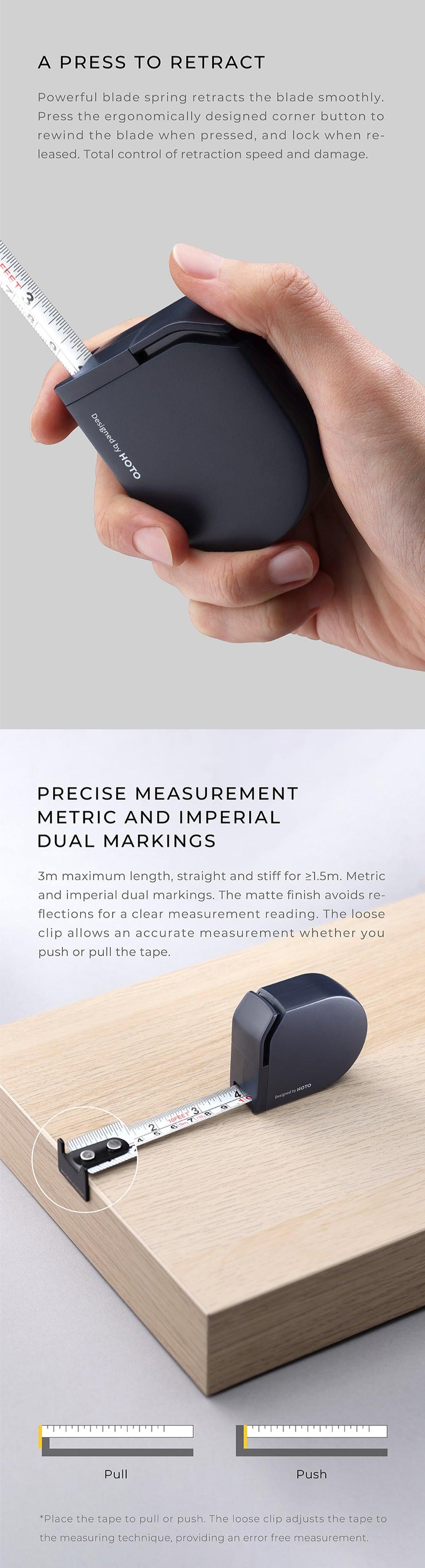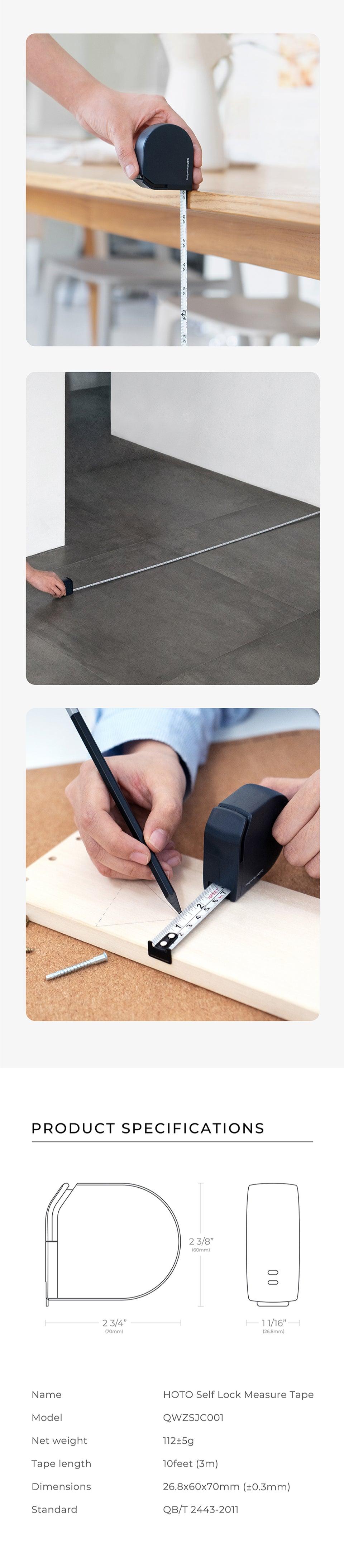 HOTO Tape Measure Self Lock Retractable Measuring Tape 3m
