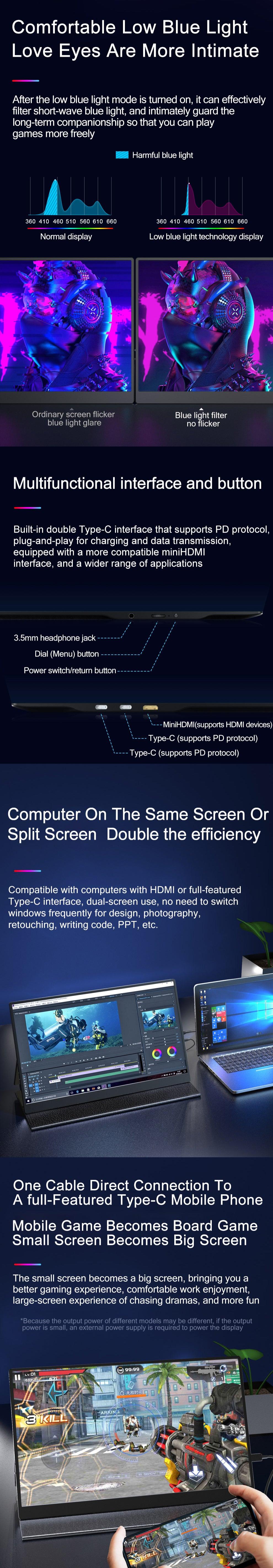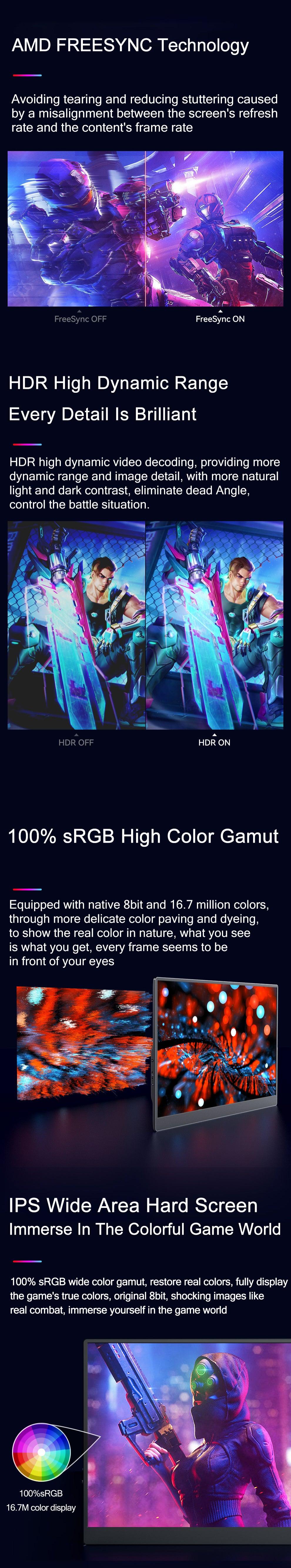 240Hz High Refresh Rate: Experience gaming like never before with the remarkable 240Hz High Refresh Rate of this portable monitor, ensuring that you can engage with fast-moving images in stunning clarity and precision. This high refresh rate guarantees an exceptional gaming adventure free from any ghosting or distortion, allowing you to aim and eliminate your adversaries with greater ease and accuracy.