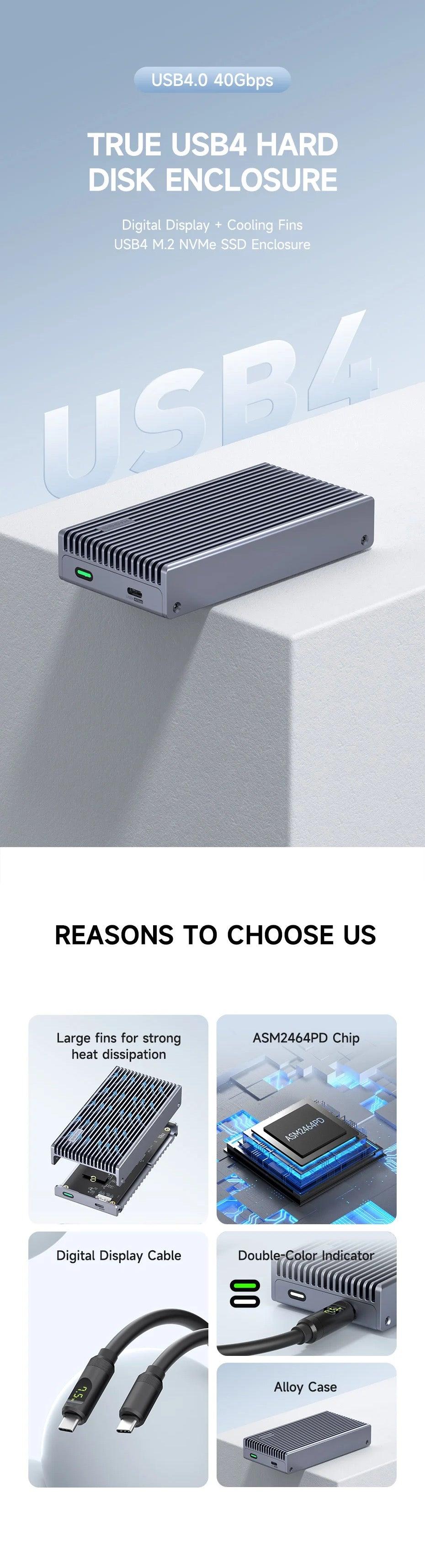 Hagibis 40Gbps USB4 M.2 NVMe SSD Enclosure with LED Digital Display USB4 Cable