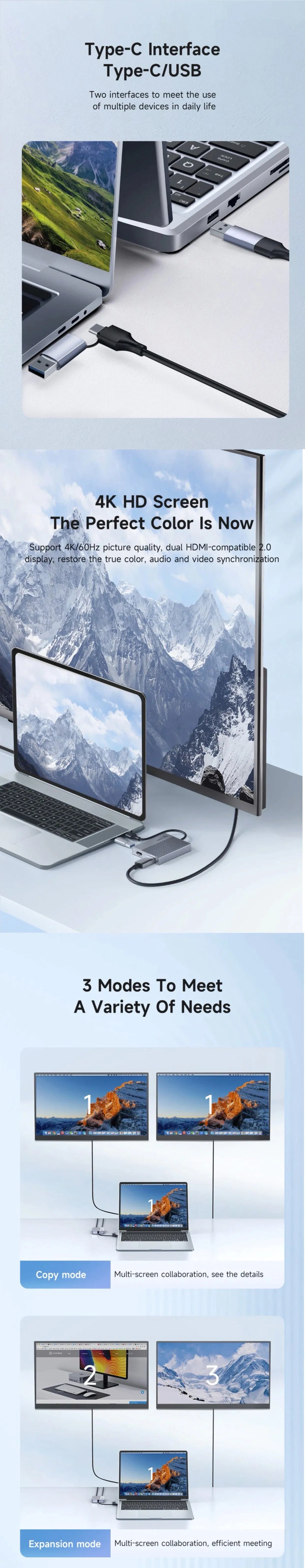 USB C/USB 3.0 to Dual Monitors: The Hagibis Dual HDMI Adapter features USB 3.0 and USB-C input ports along with two 4K@60Hz HDMI output ports, enabling you to connect two additional displays to your computer simultaneously.