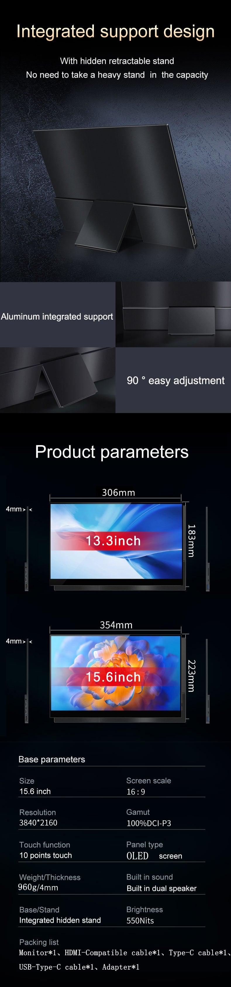 4k OLED Portable Monitor Touch Screen 3840x2160 60Hz HDR
