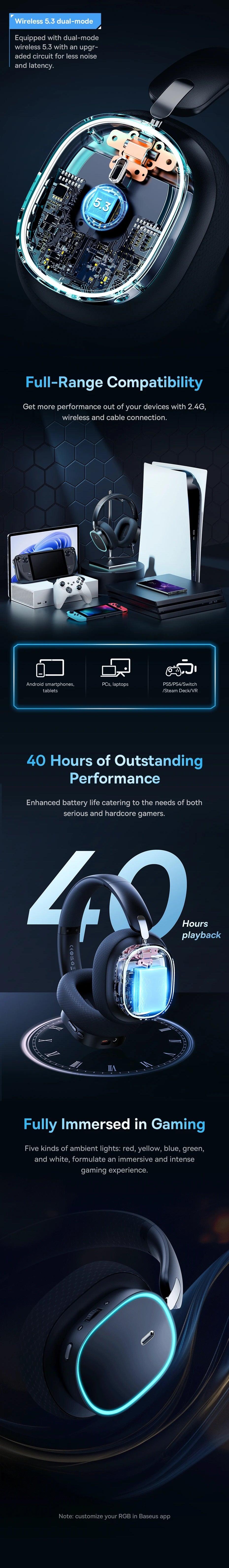 Baseus AeQur GH02 RGB Gaming Wireless Bluetooth 5.3 Headset with Mic