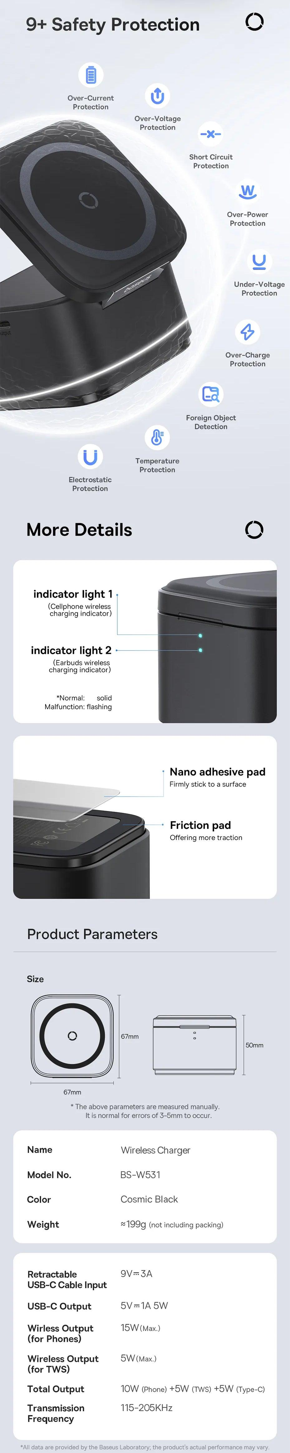 Wireless Output of Up to 15W: Delivering a maximum wireless output of 15W specifically designed for Apple devices.