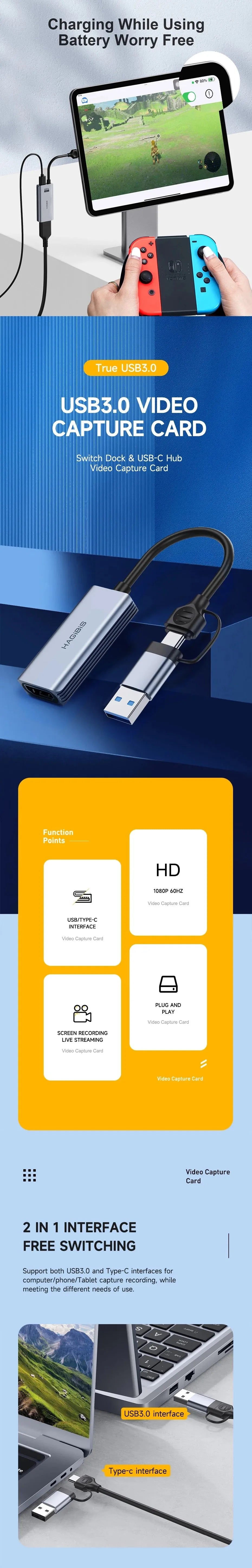 Hagibis USB 3.0 Video Capture Card HDMI to USB C 1080p 60Hz with PD Port