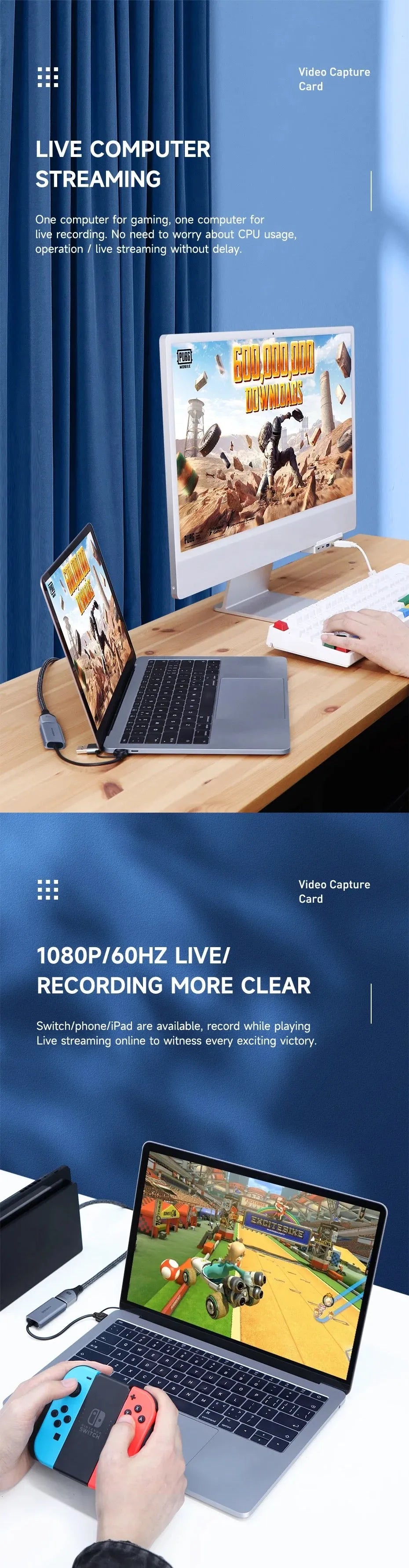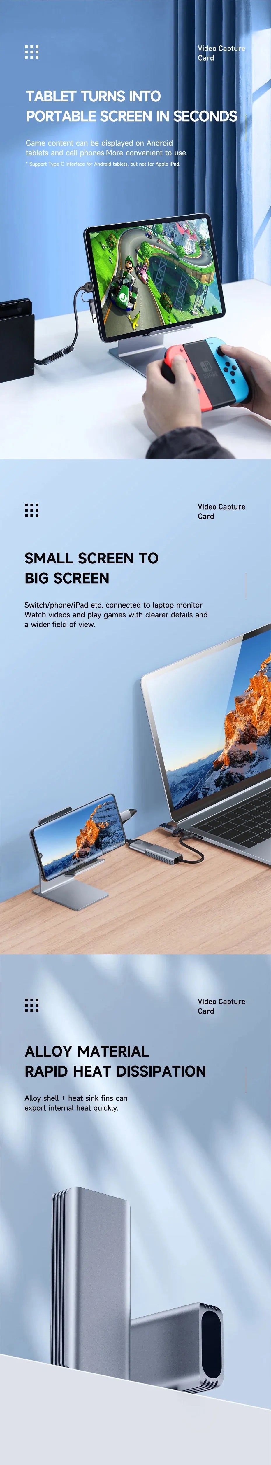 100W High Speed Charging: The Hagibis video capture card supports 100W PD fast charging and is compatible with Power Delivery 3.0 and Qualcomm Quick Charge 5.0 protocols (including 2.0/3.0/4+). It allows charging while in use, so you don’t have to worry about your tablet running out of power during gameplay.
