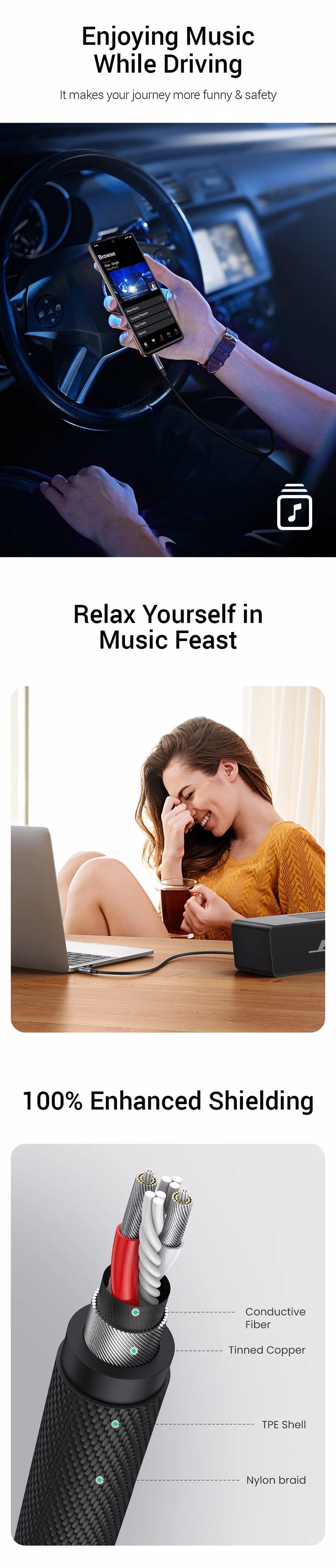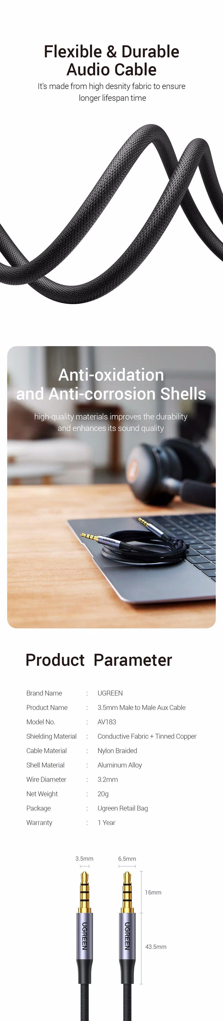 Upgraded Durability: The Ugreen Headphone Jack to Headphone Jack Cable is designed to endure prolonged usage. Featuring an advanced nylon braided jacket and strengthened wire joints, this Car Aux Cable has undergone over 10000 bend tests, guaranteeing resilience against twists, pulls, and tangles. Its aluminium alloy shells prevent corrosion, preserving optimal sound quality. Crafted with oxygen-free copper, it delivers superior conductivity and long-lasting durability.